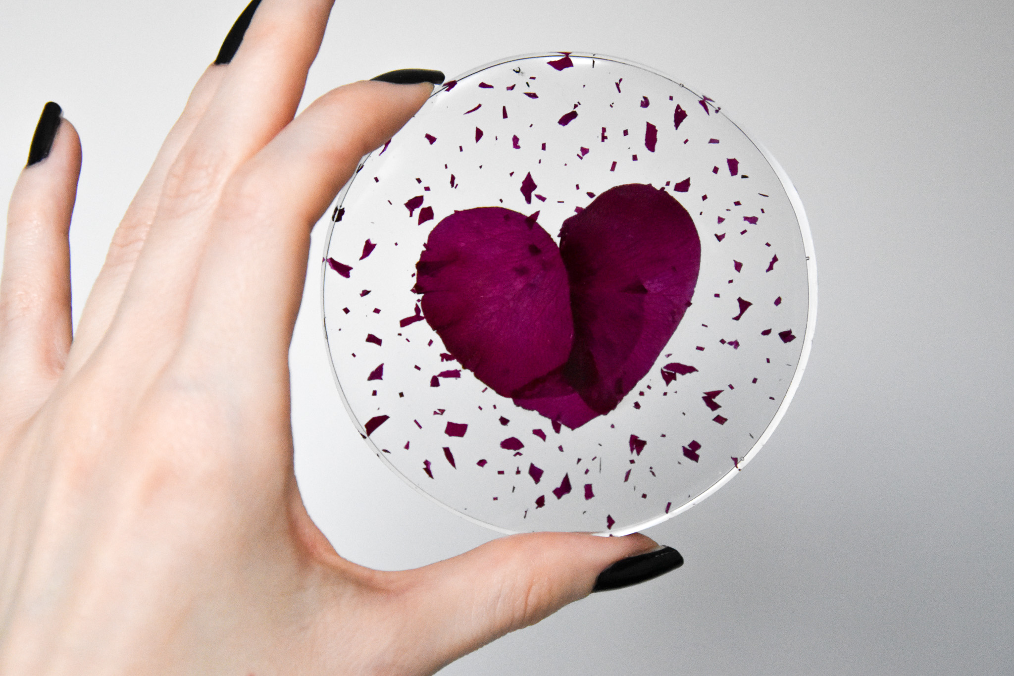 Witraż w kształcie serca, wykonany z bukietu ślubnego Patrycji - mojej już stałej klientki, która w ten sposób utrwaliła już kilka najważniejszych wydarzeń z życia jej rodziny: zaręczyny, ślub i narodziny dziecka. Wykorzystałyśmy kwiaty odpowiednio z: wianka z sesji zaręczynowej, bukietu ślubnego i bukietów, które dostała od męża po porodzie <3