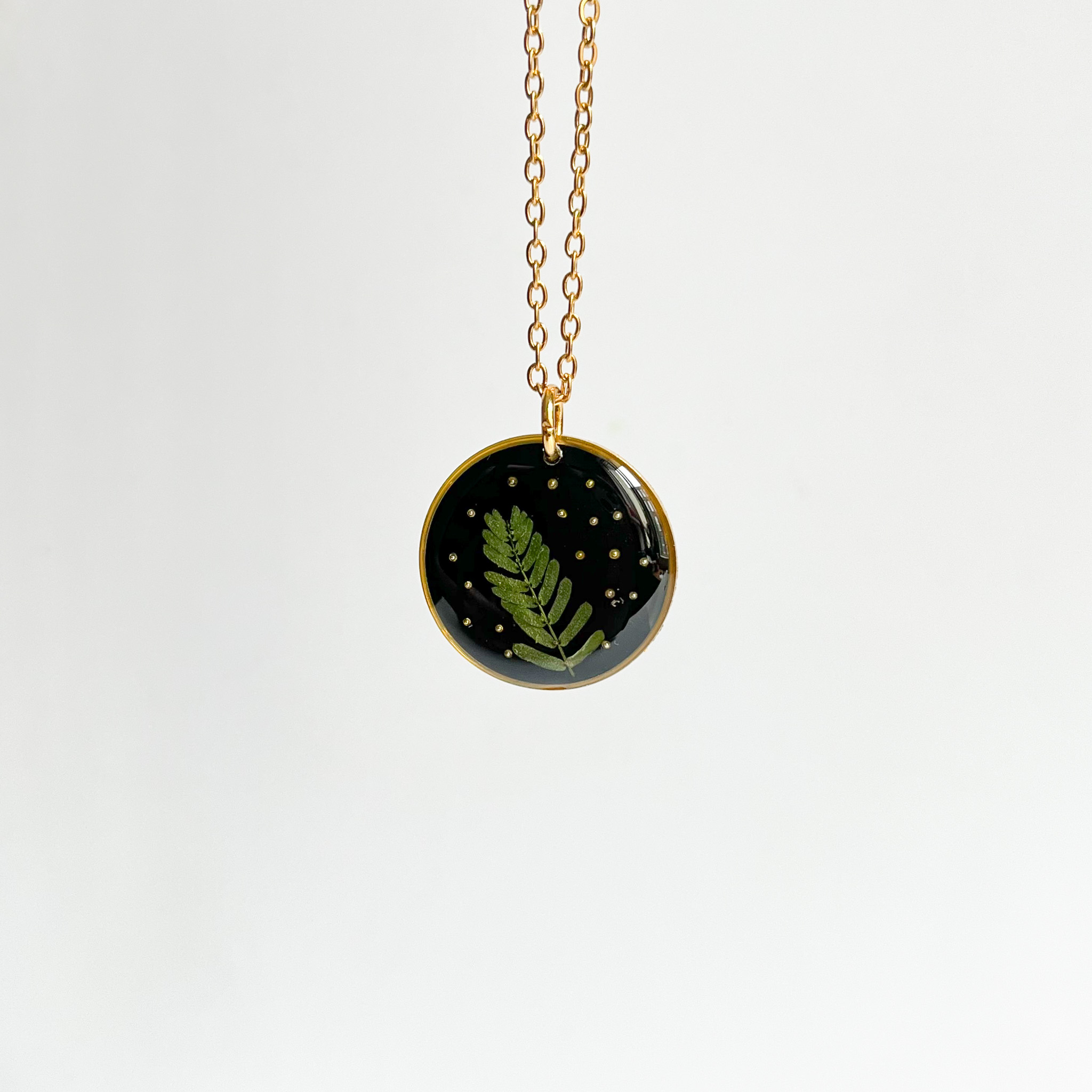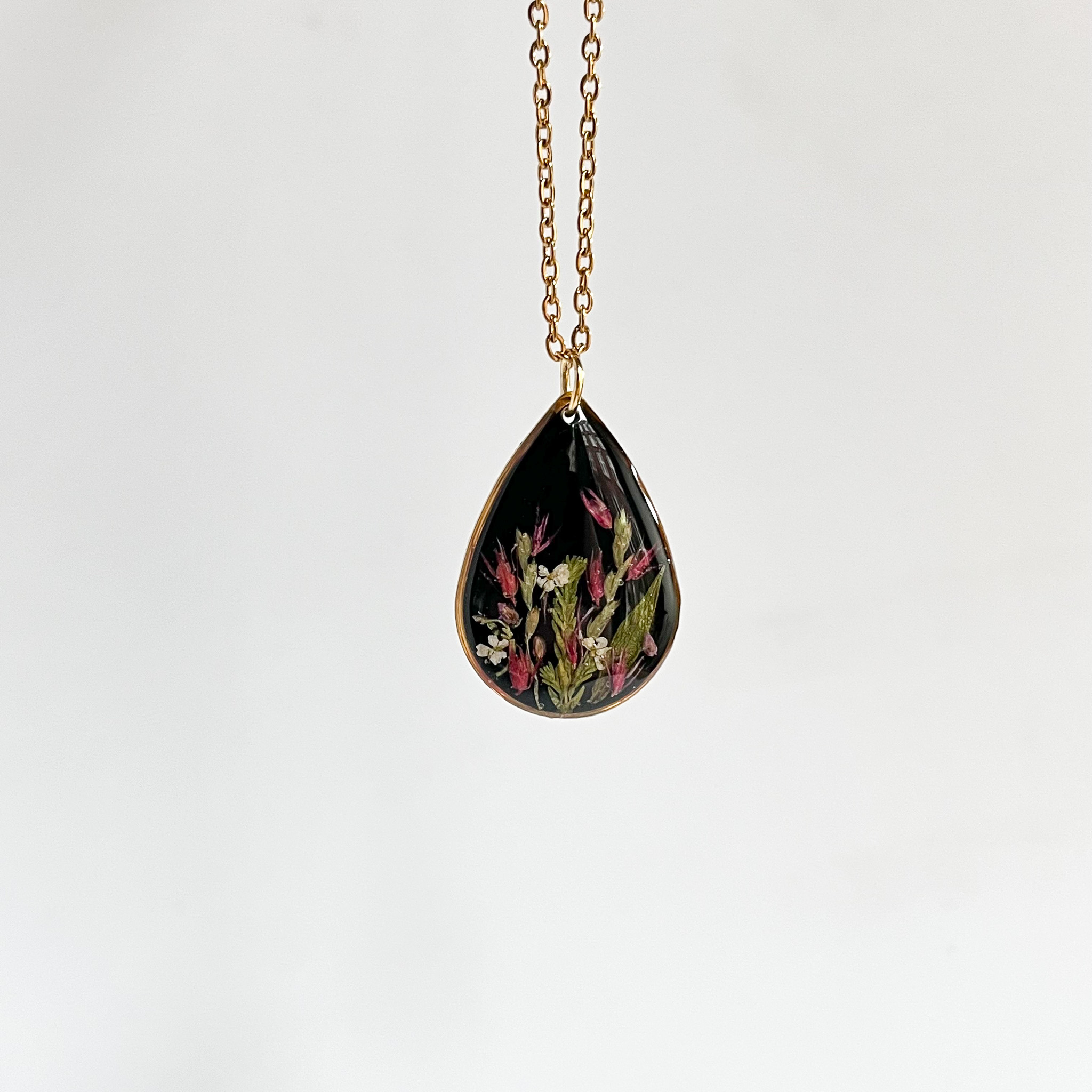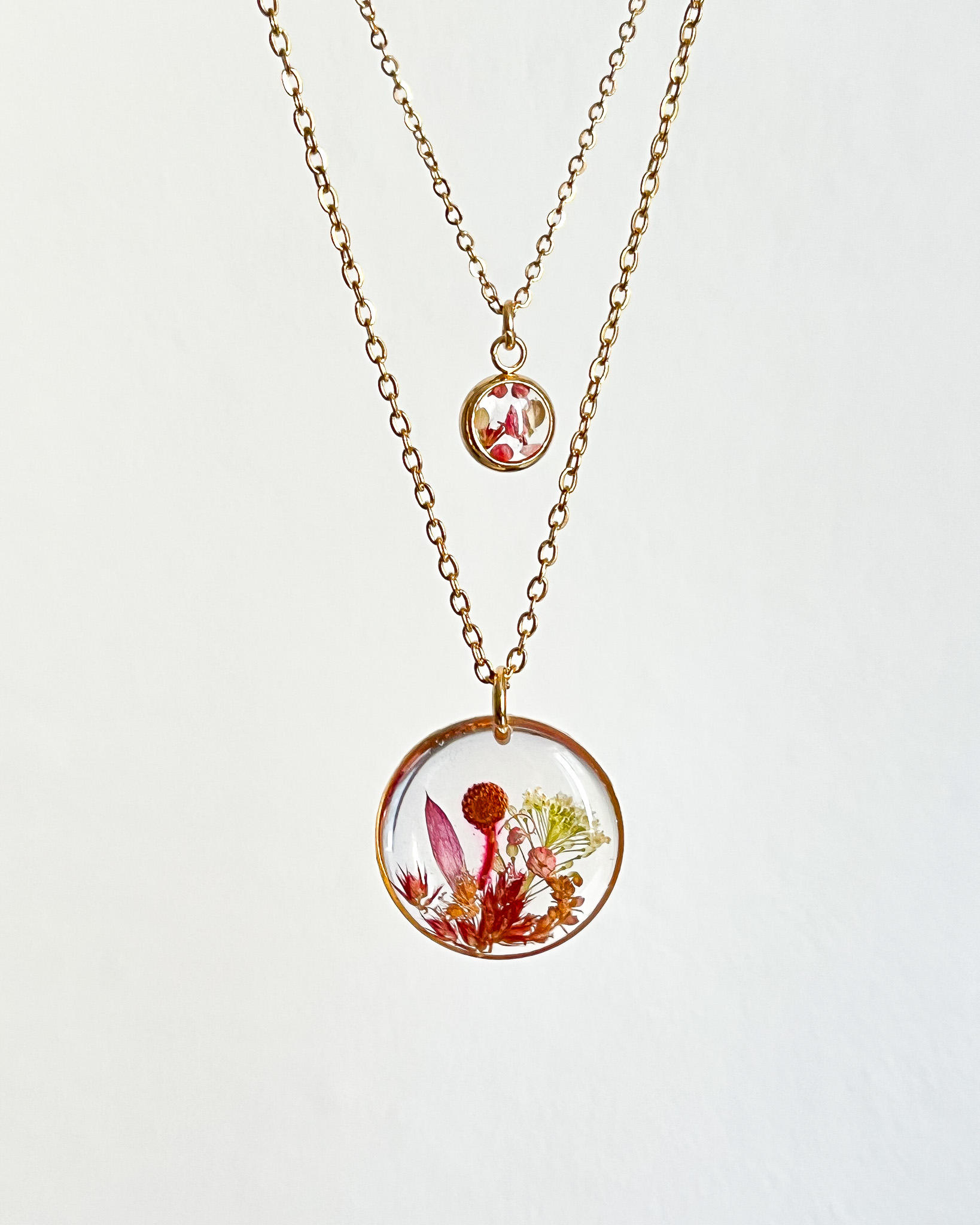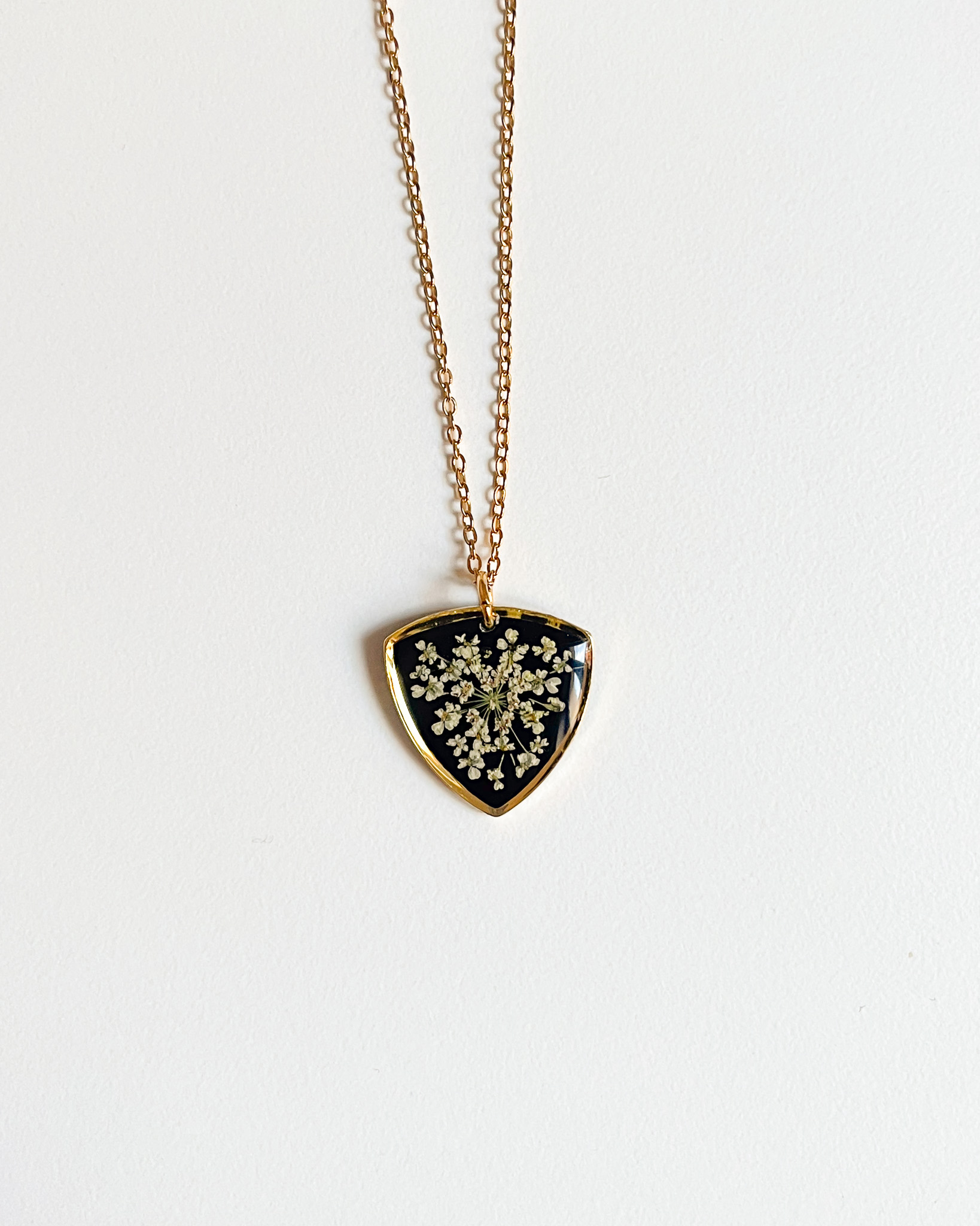 Naszyjnik dla przyjaciółki-miłośniczki natury z prawdziwym bogactwem roślin! Mamy tu stokrotkę, nawłoć, krwawnik, niezapominajkę, tawułę i dziką marchew.