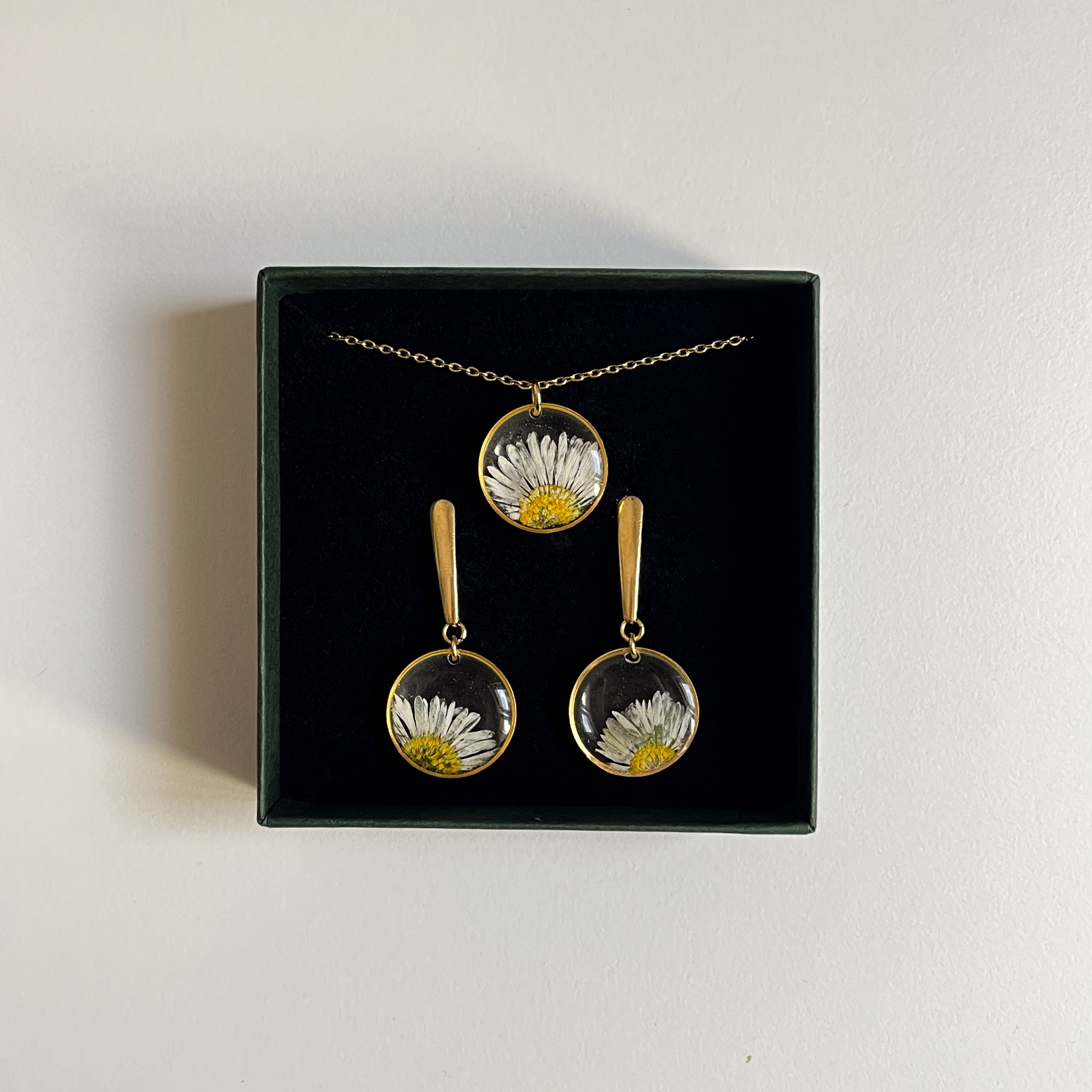 Wyjątkowy zestaw ze stokrotkami zamkniętymi w złotych kołach