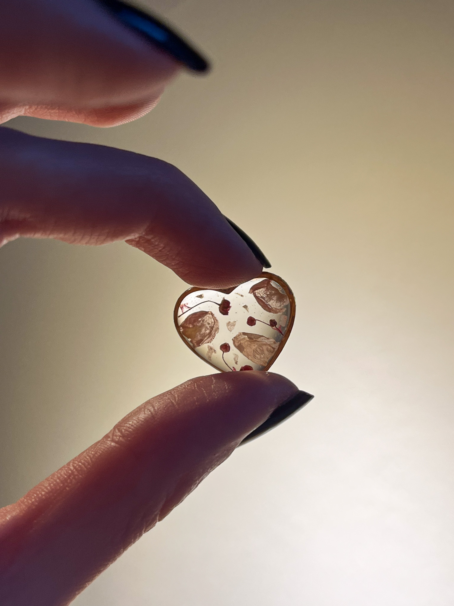Fragment witrażu w kształcie serca, wykonanego z bukietu ślubnego Patrycji - mojej już stałej klientki, która w ten sposób utrwaliła już kilka najważniejszych wydarzeń z życia jej rodziny: zaręczyny, ślub i narodziny dziecka. Wykorzystałyśmy kwiaty odpowiednio z: wianka z sesji zaręczynowej, bukietu ślubnego i bukietów, które dostała od męża po porodzie <3