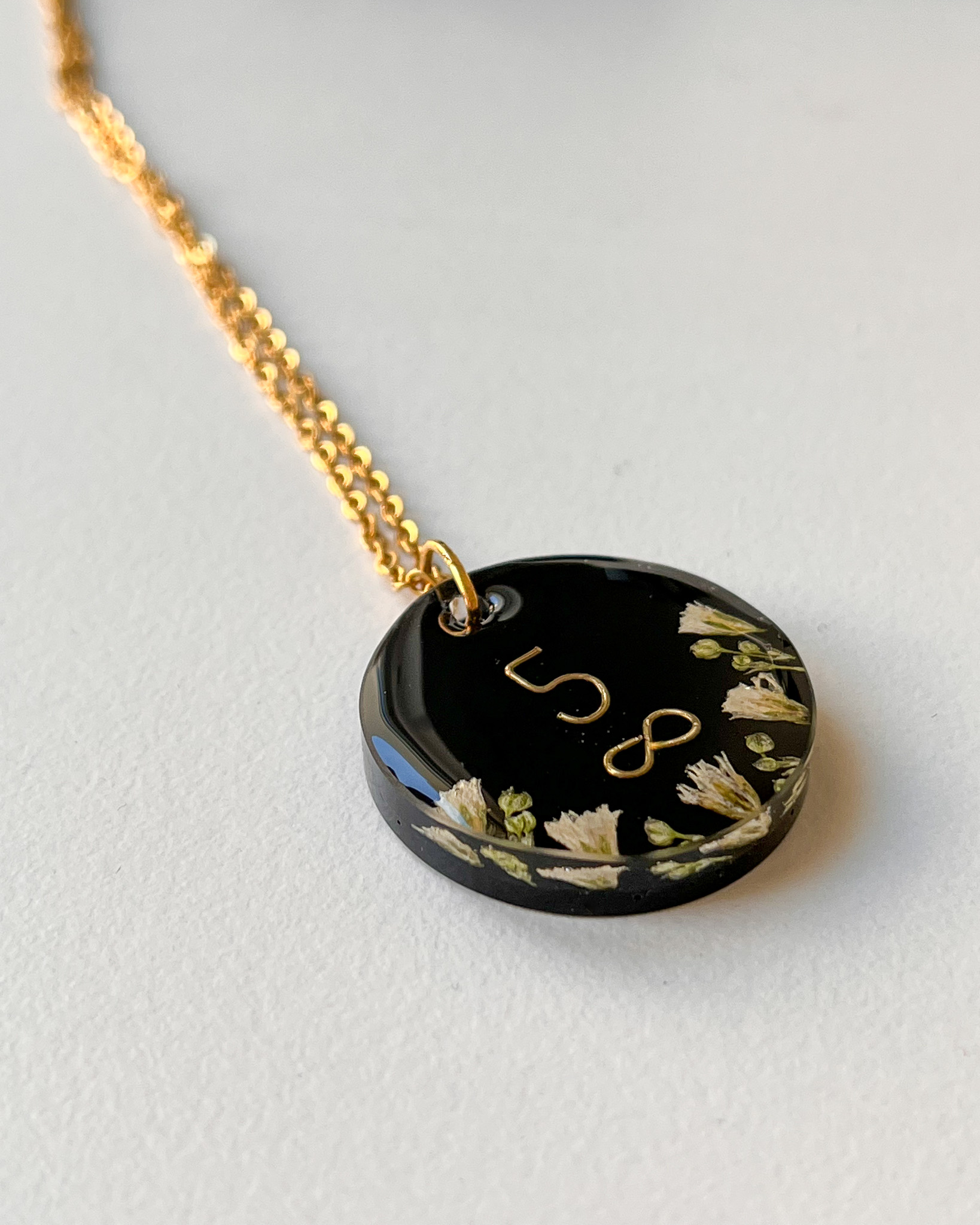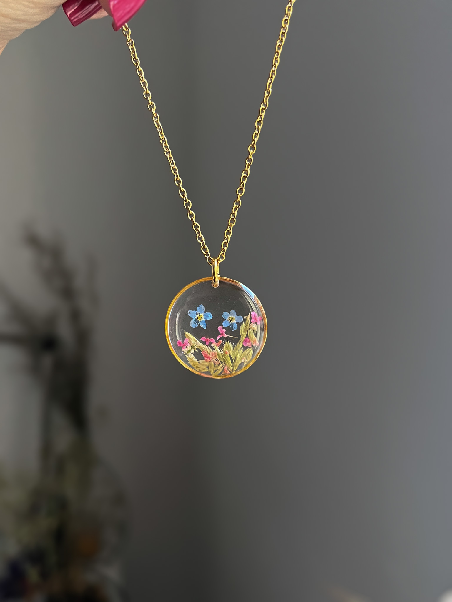Jedna z najbardziej wzruszających historii, jakie do mnie trafiły. W naszyjniku zamknęłyśmy kwiat bzu, który był częścią ostatniego bukietu otrzymanego od Taty.
