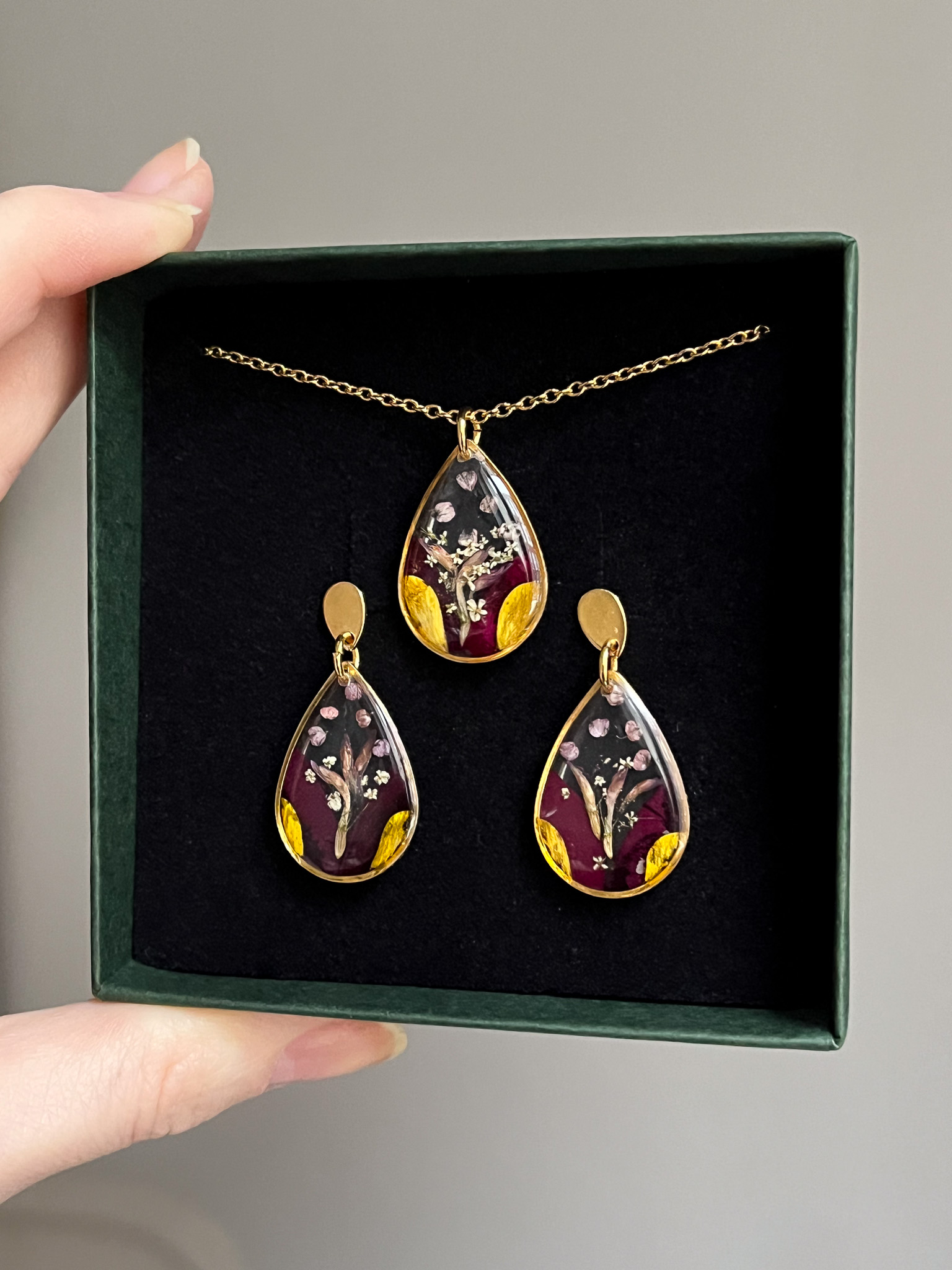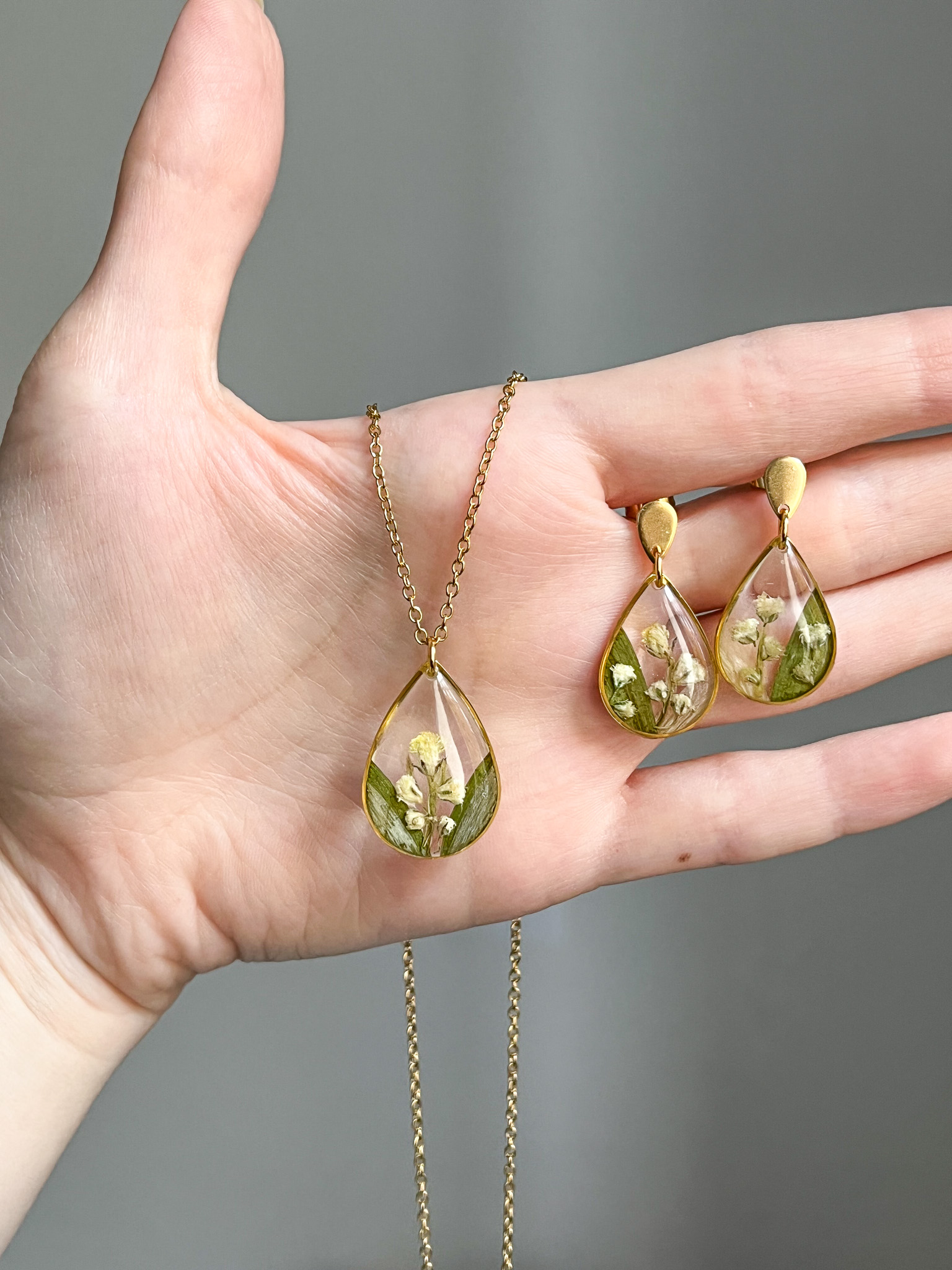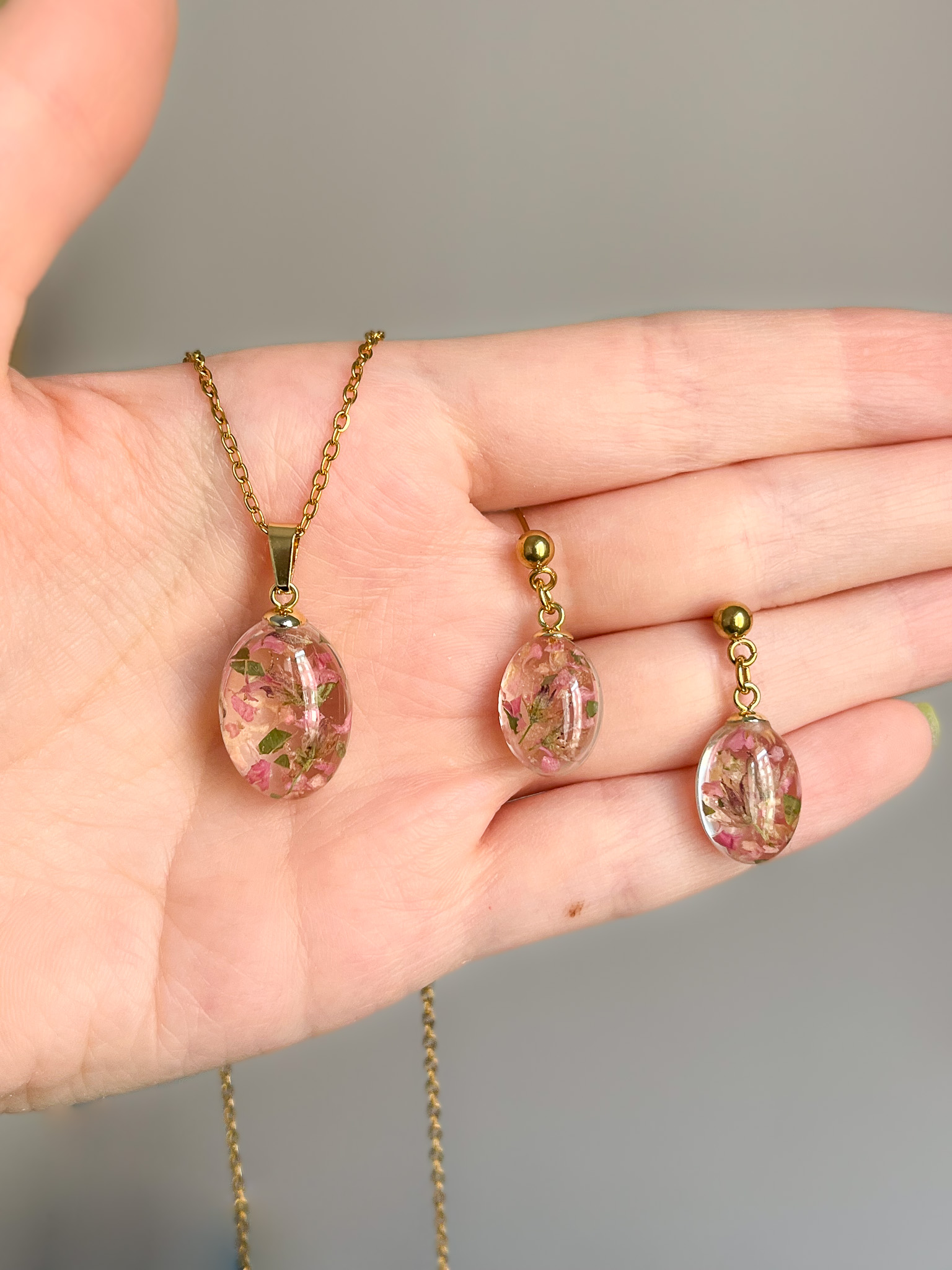 Zestaw biżuterii z bukietu ślubnego Iryny. Choć dostałam garsteczkę już ususzonych kwiatków z tego dnia, udało nam się zachować ich klimat i przede wszystkim - te cudowne wspomnienia!