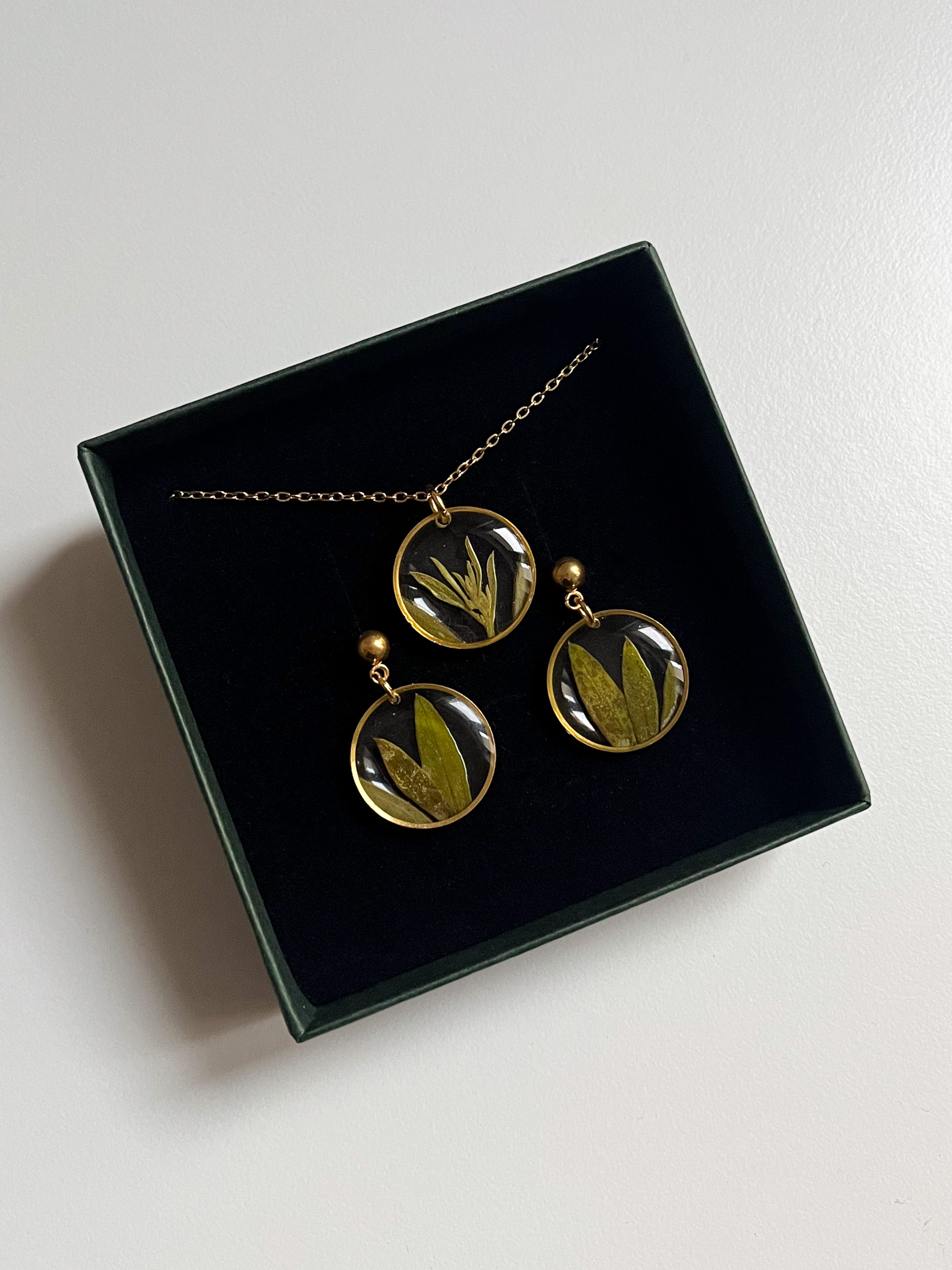 Gdy pewna miłośniczka Grecji dowiedziała się, że jestem tam na urlopie, poprosiła żebym zebrała dla niej listki oliwki i uwieczniła je w biżuterii. Tak też zrobiłam, w efekcie czego powstał ten bardzo minimalistyczny naszyjnik 🙂