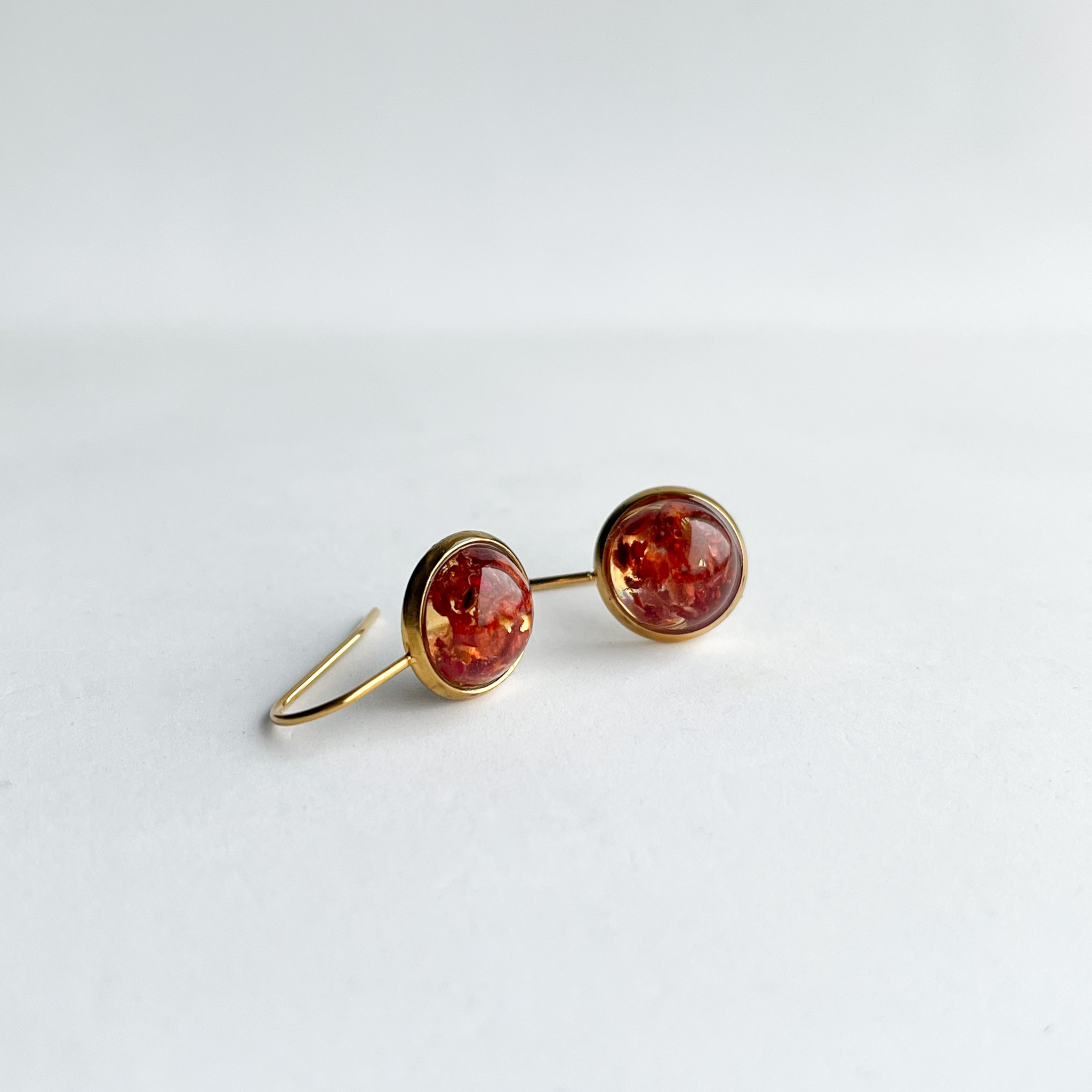 Bardzo delikatne kolczyki na długim sztyfcie: przezroczyste krople z marchwią i szklany koralik