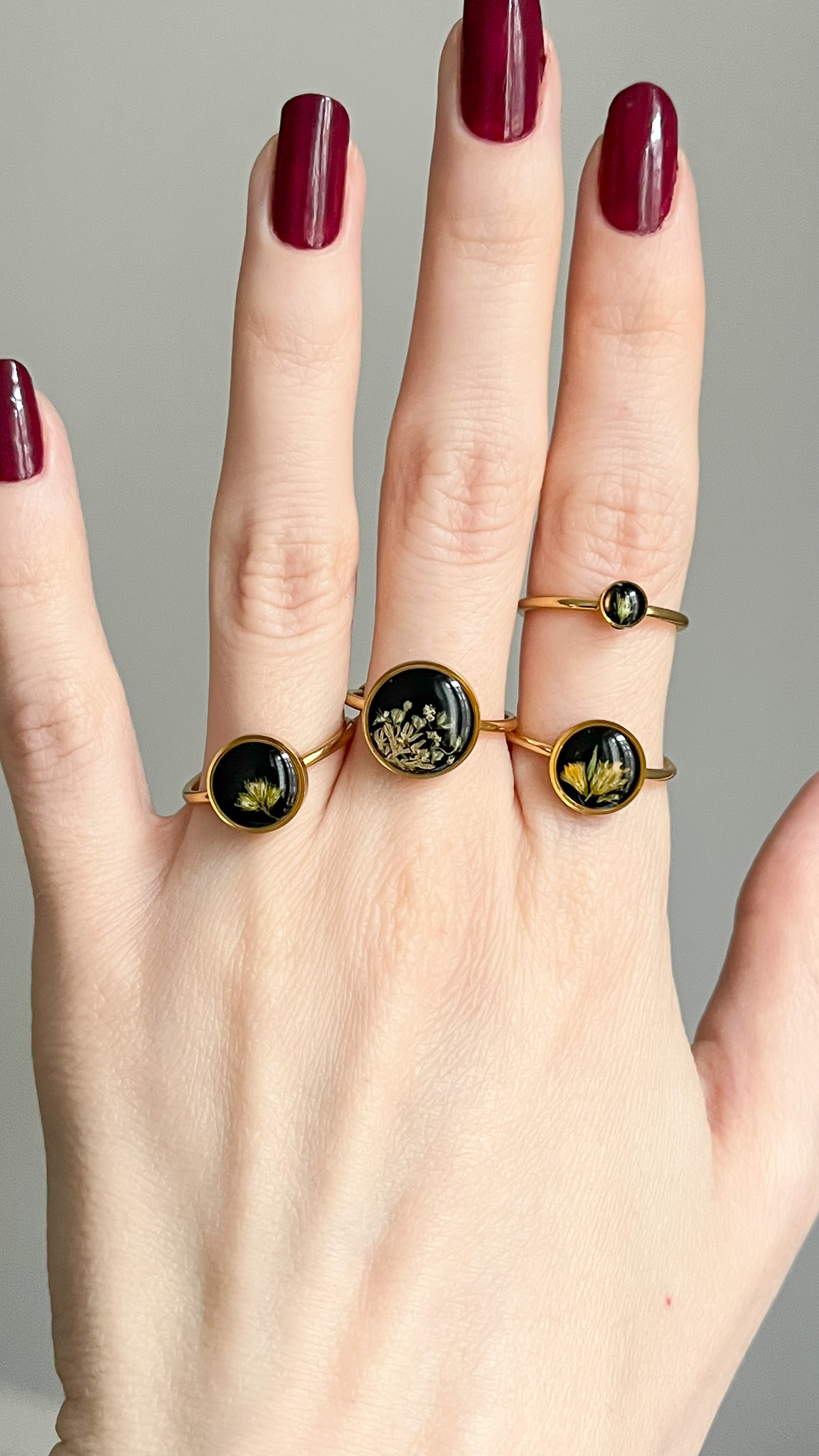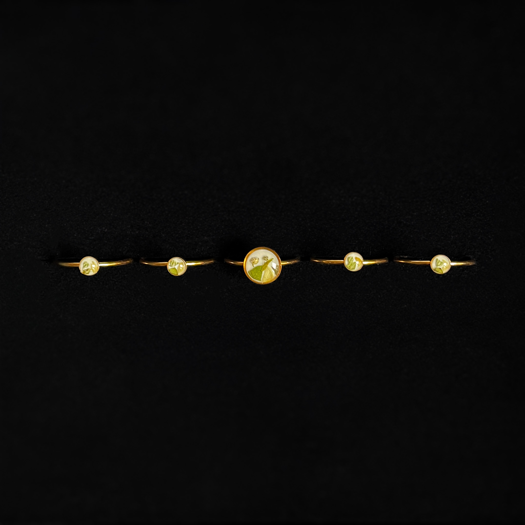 Zestawienie złotych pierścionków z czarnymi tłami