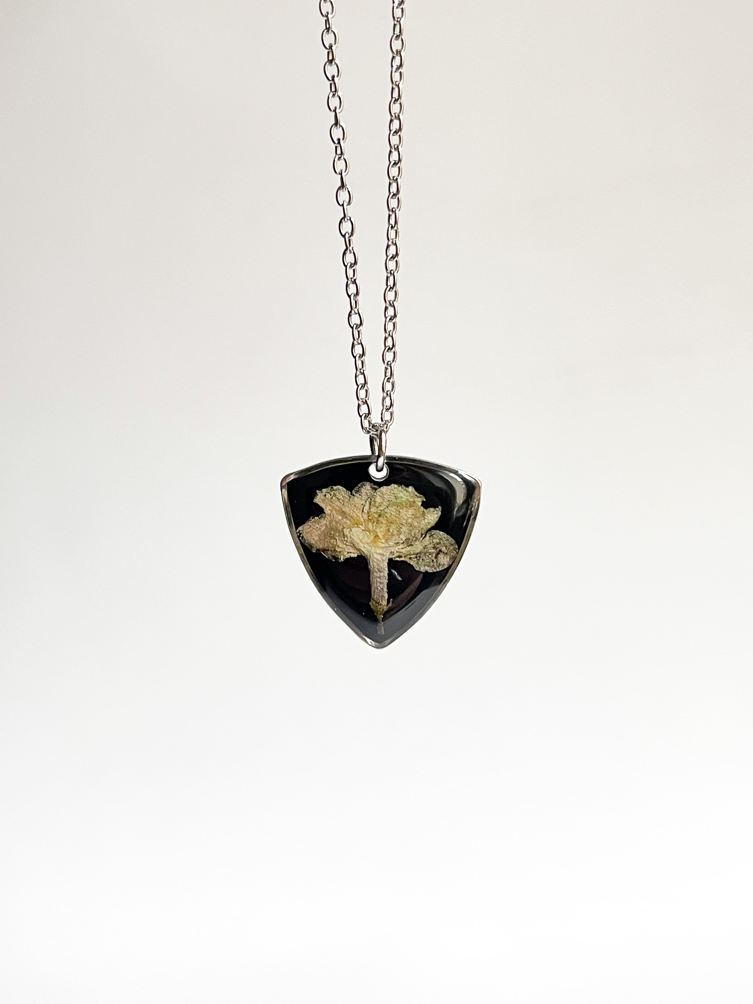 Naszyjnik z bukietem ślubnym, który trafił do pracowni samoistnie zasuszony po latach od wielkiego dnia 😉