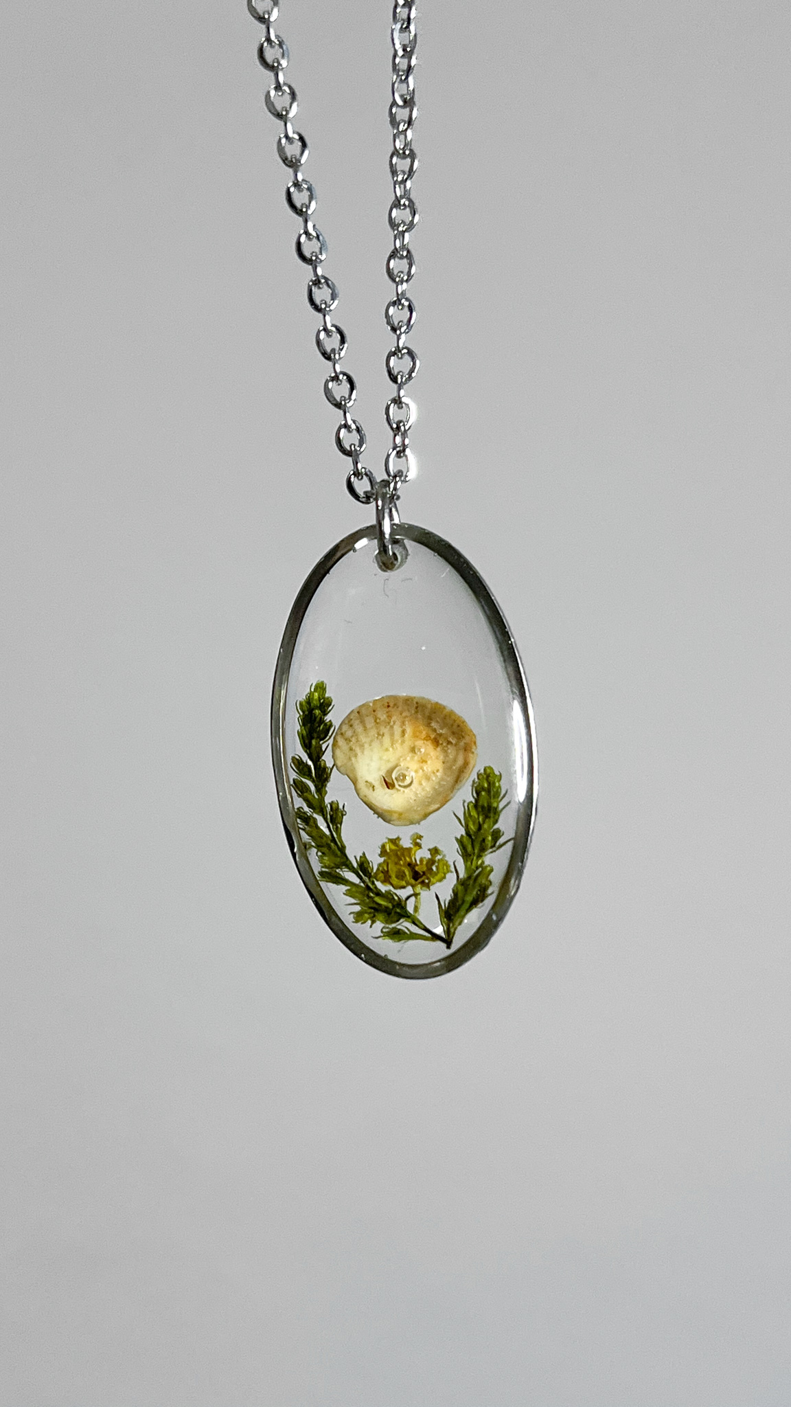 Naszyjnik na zamówienie jako prezent dla biolożki morskiej, zakochanej po uszy w naszym Bałtyku. W środku jest drobna muszelka znad naszego morza, jeszcze drobniejszy bąbelek powietrza przypominający perłę i zieleń kojarząca się z morskimi roślinami.