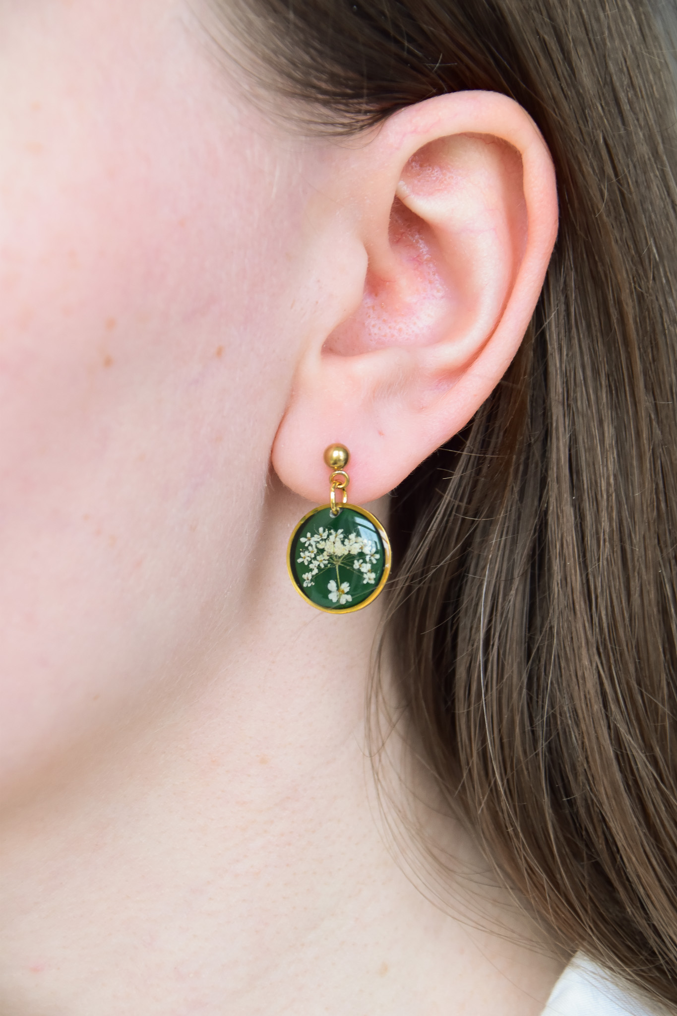 Są w kolorze głębokiej zieleni ze złotym, tłoczonym logo, a w środku znajduje się miękki wkład, dzięki któremu biżuteria się nie porysuje. Zachęcam do tego, żeby to w nim przechowywać biżuterię. Oprócz tego, w środku znajdziesz małą kartkę z podziękowaniem, kontaktem i przede wszystkim - instrukcją pielęgnacji, czyli co zrobić, żeby biżuteria służyła jak najdłużej. O ile w uwagach nie zaznaczysz inaczej - będzie tam również paragon.