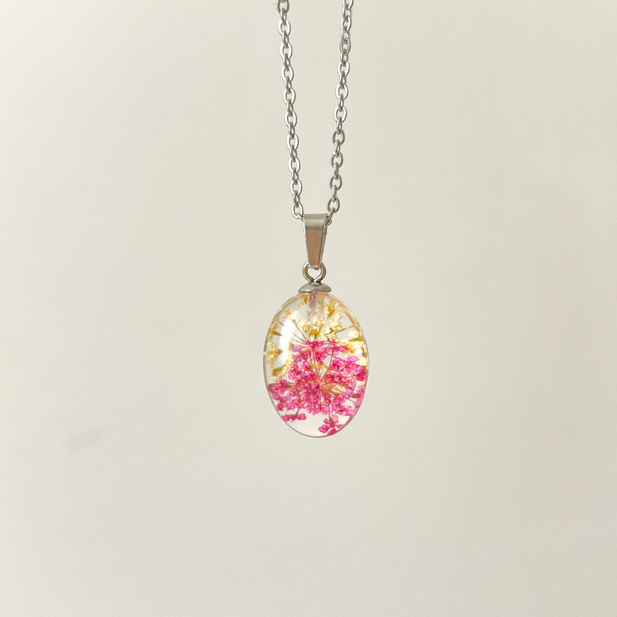 naszyjnik – cukiereczek z białymi i różowymi kwiatkami