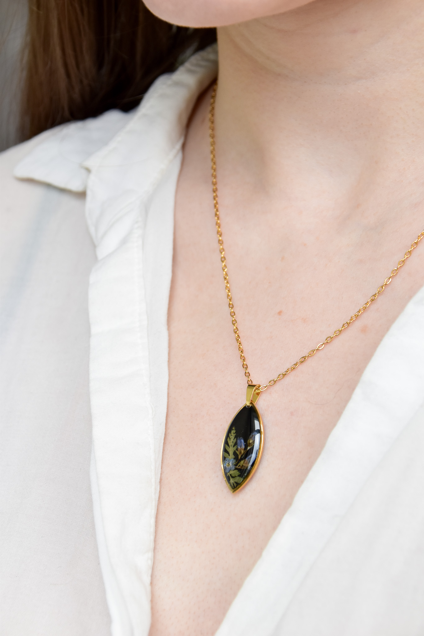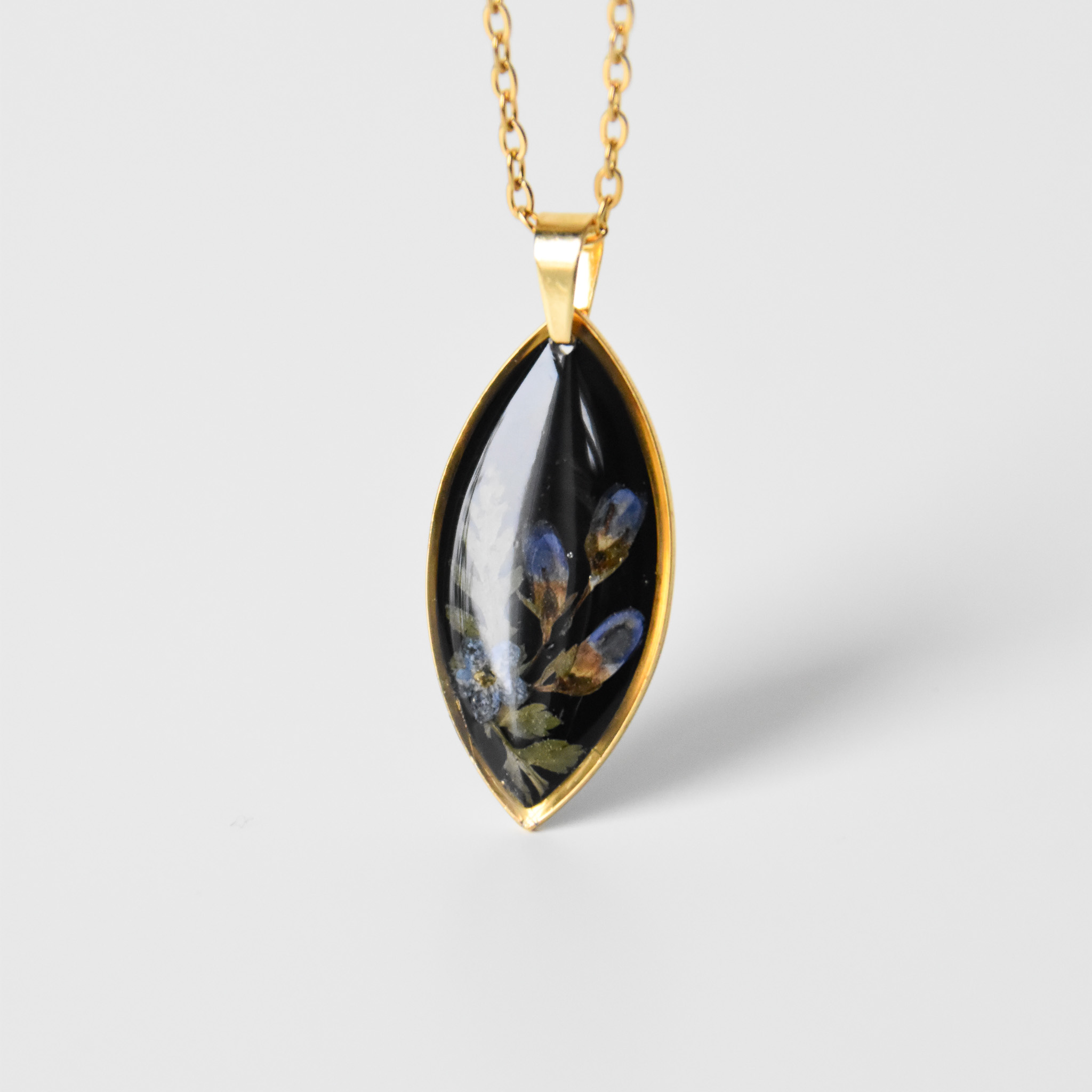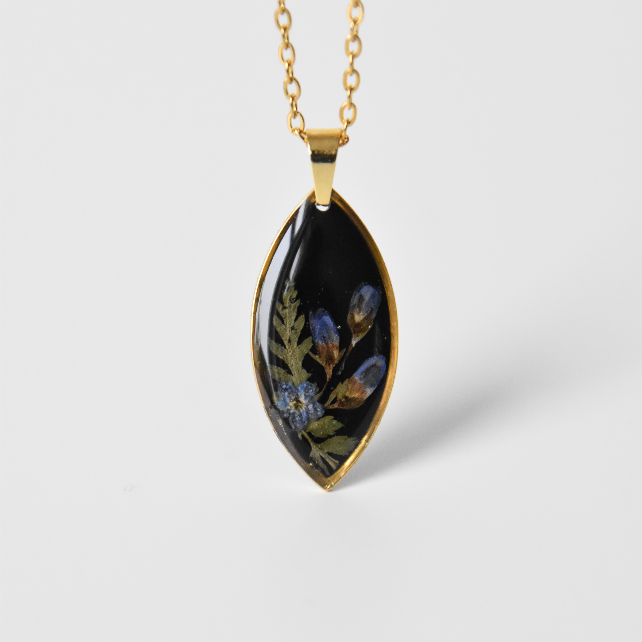 naszyjnik – czarne oko z niebieskimi kwiatami i zielenią