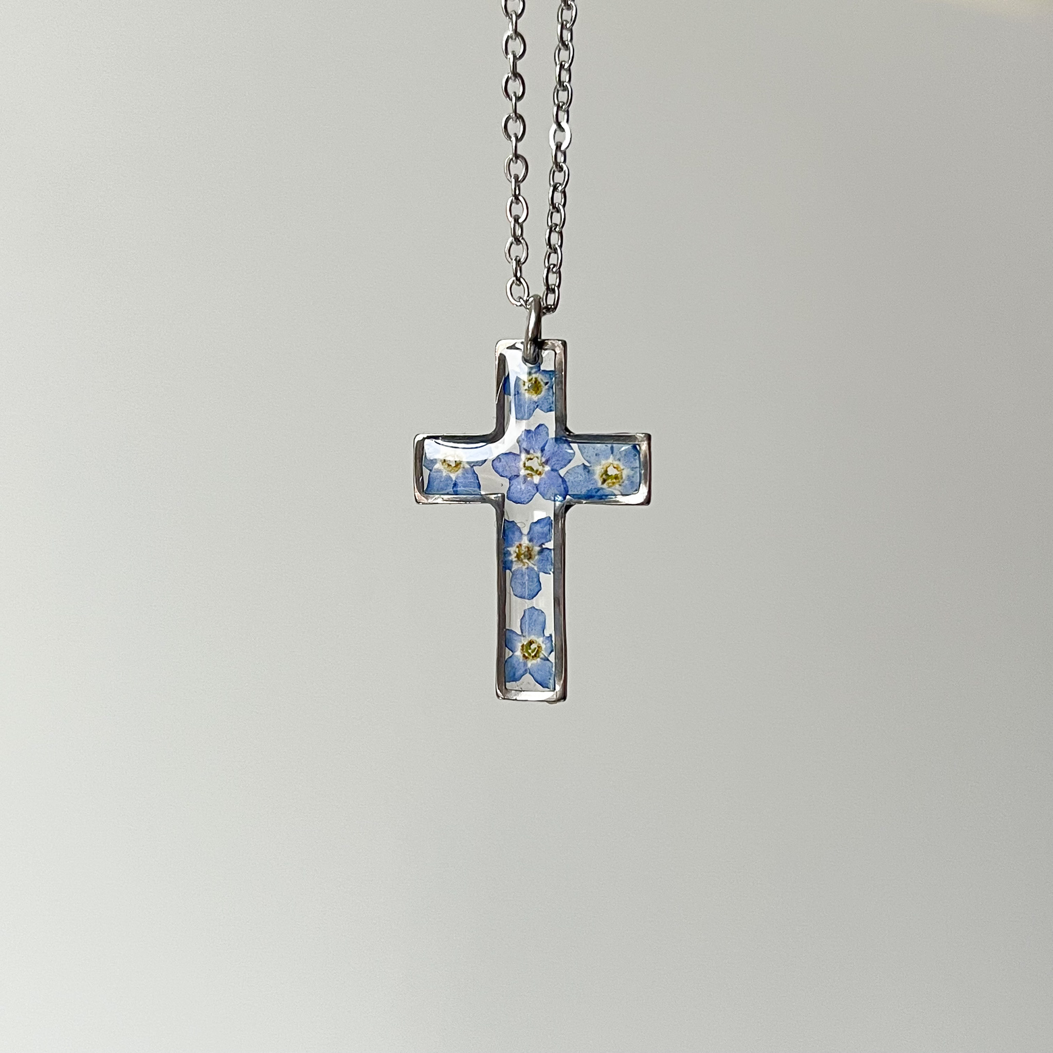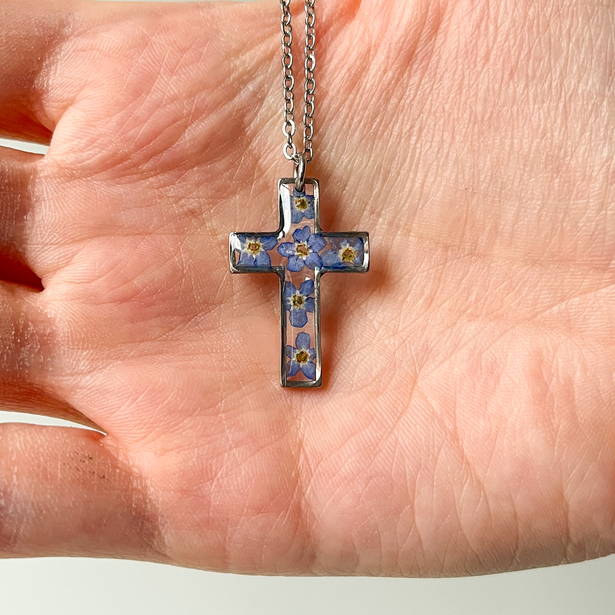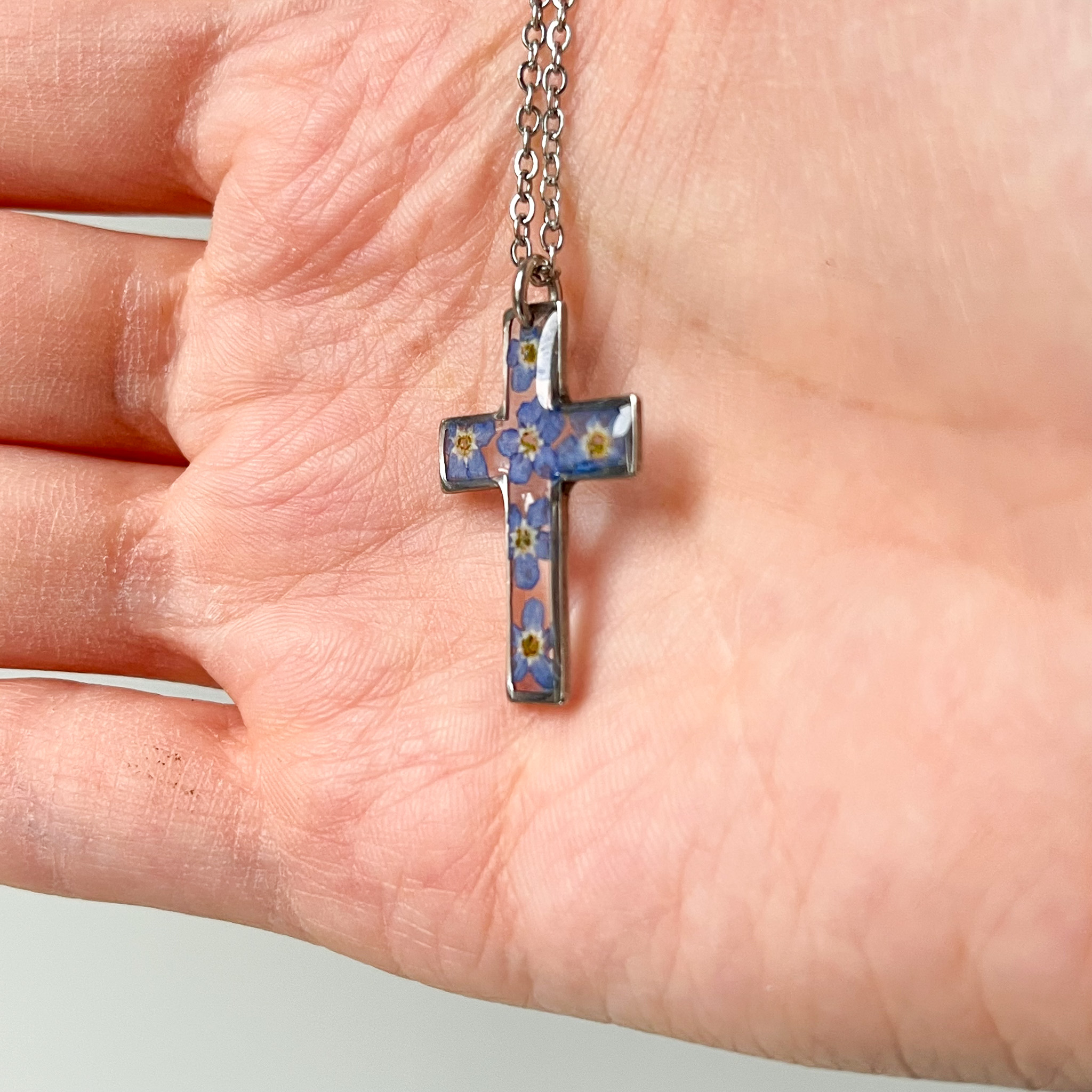 naszyjnik – krzyżyk z niezapominajkami