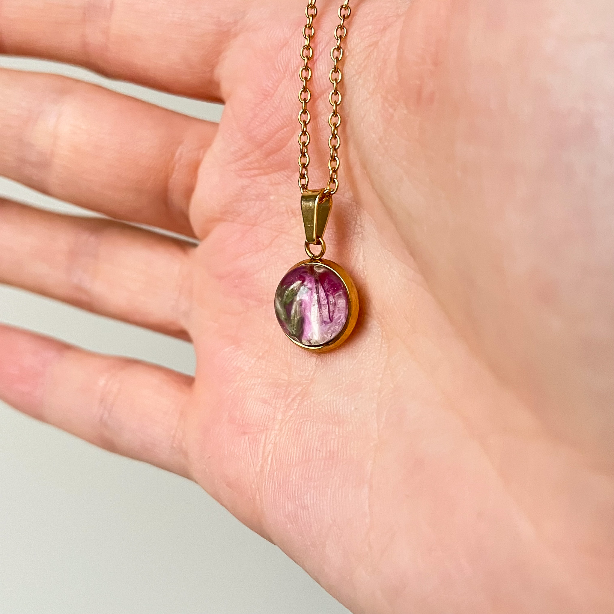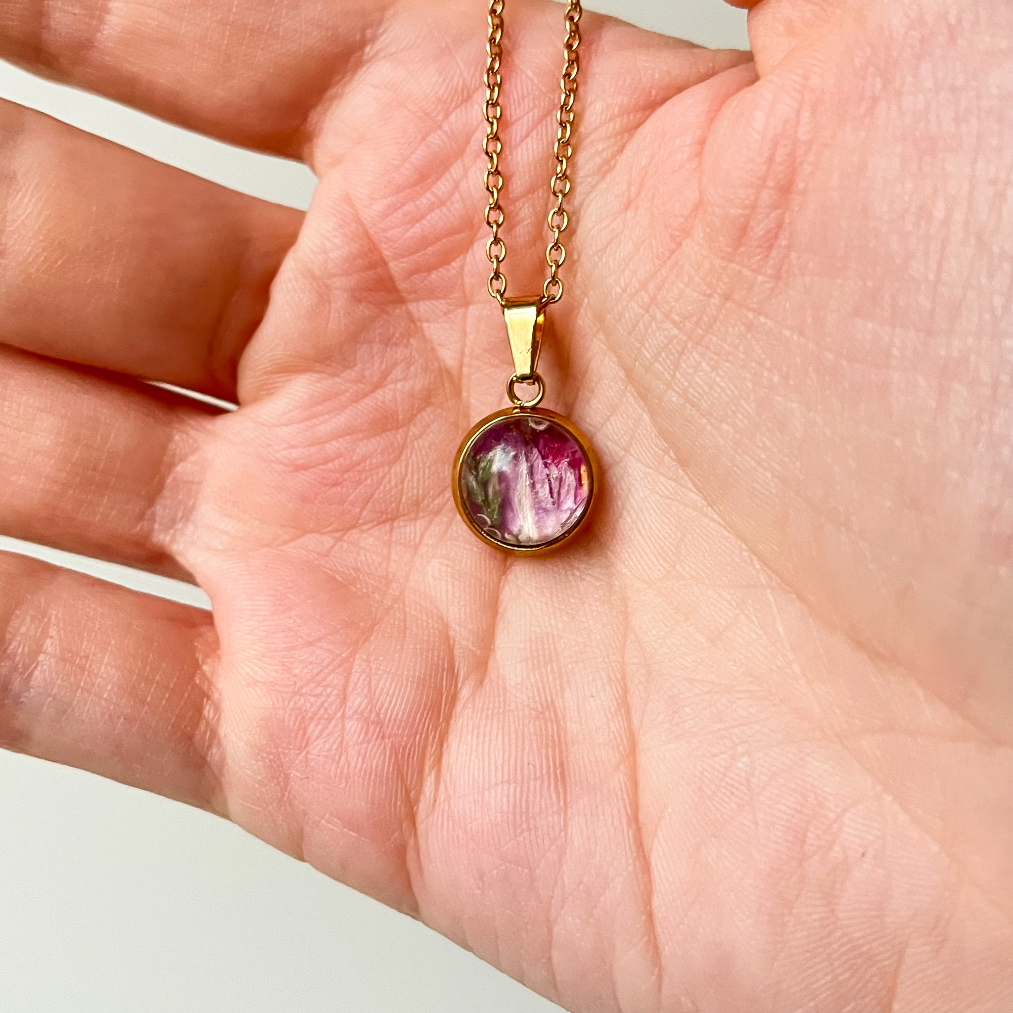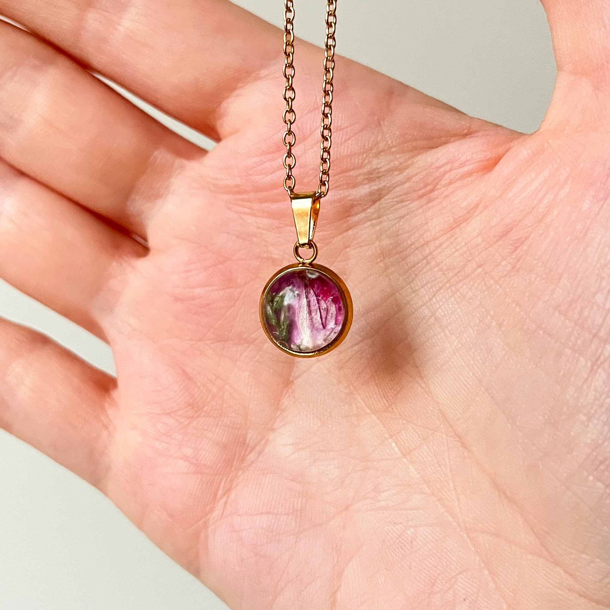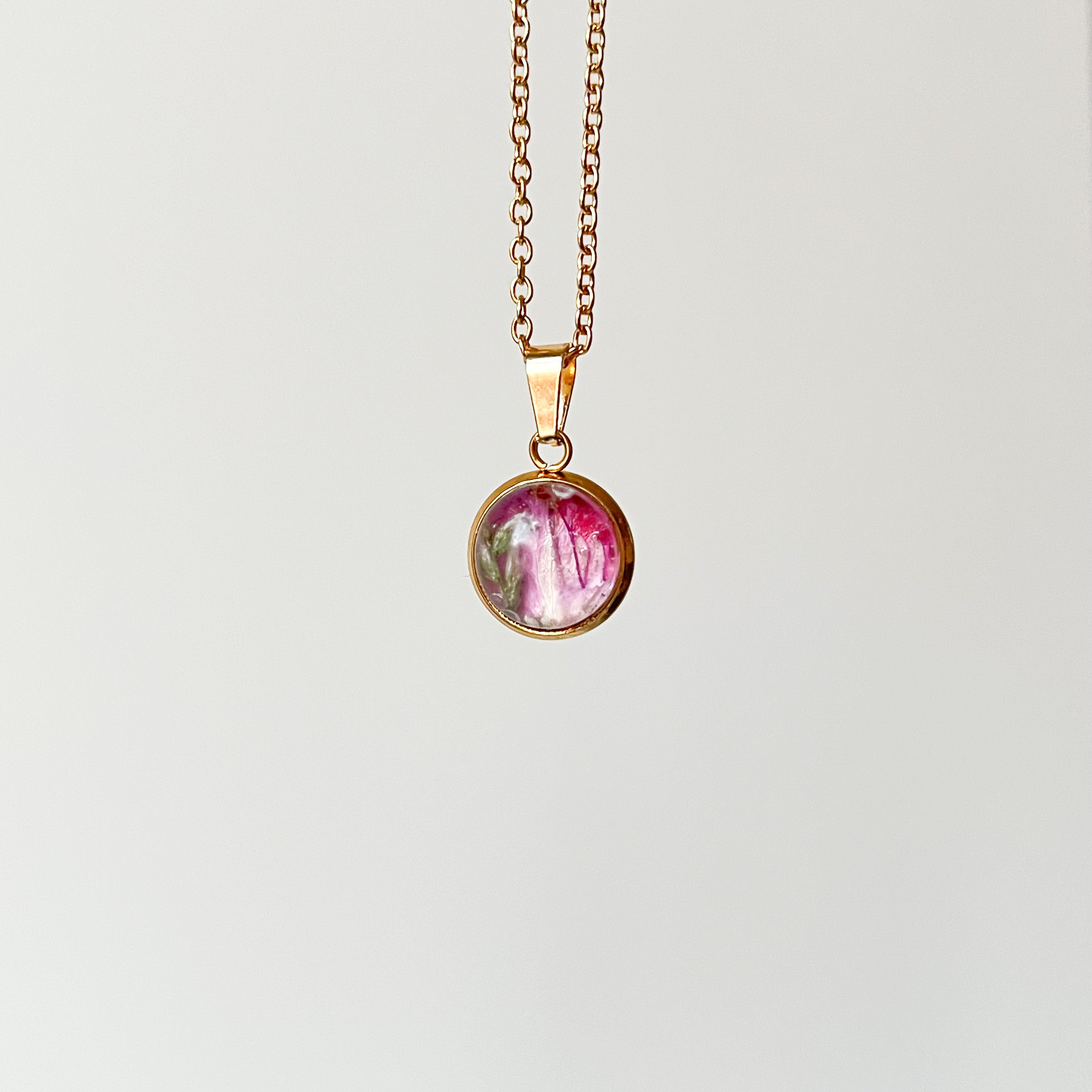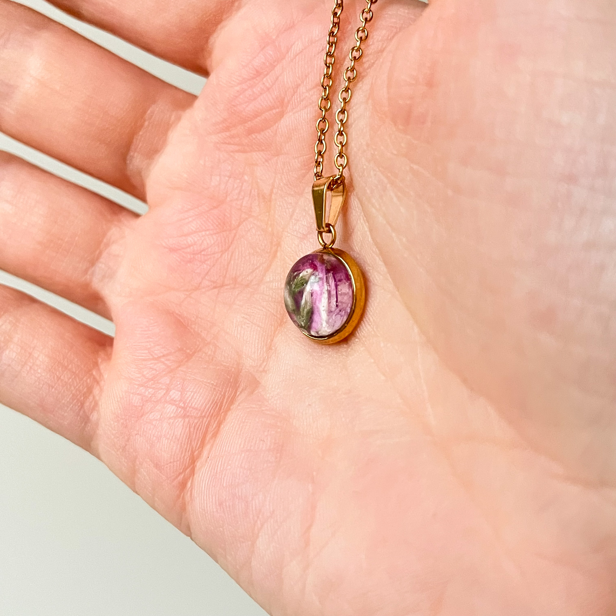 naszyjnik – medalion z różowymi kwiatami i zielenią (mniejszy)