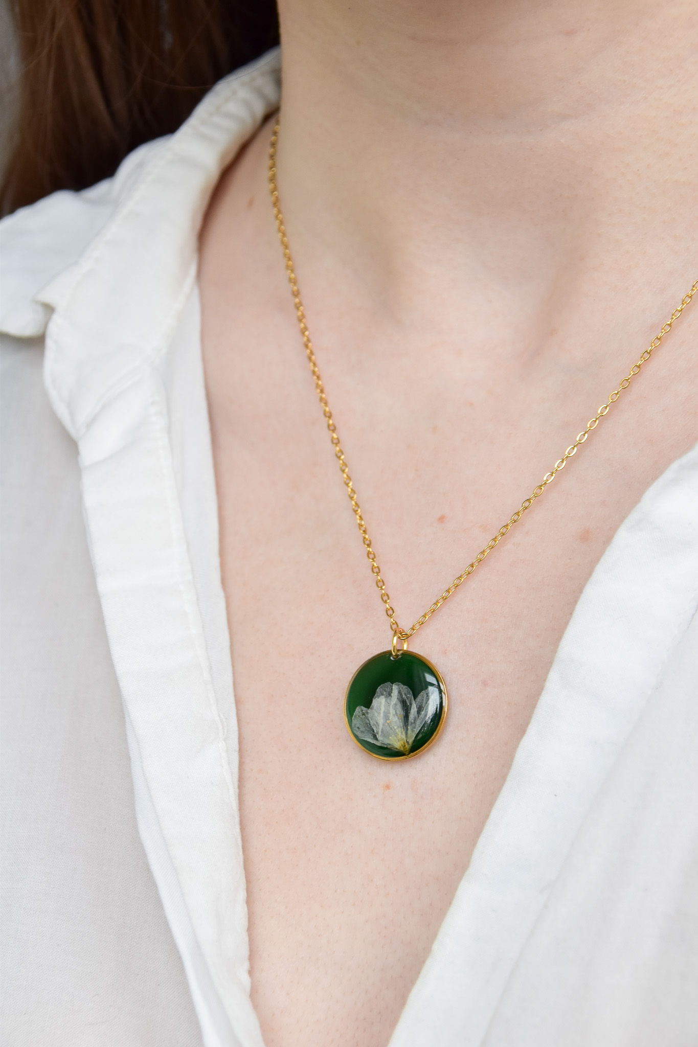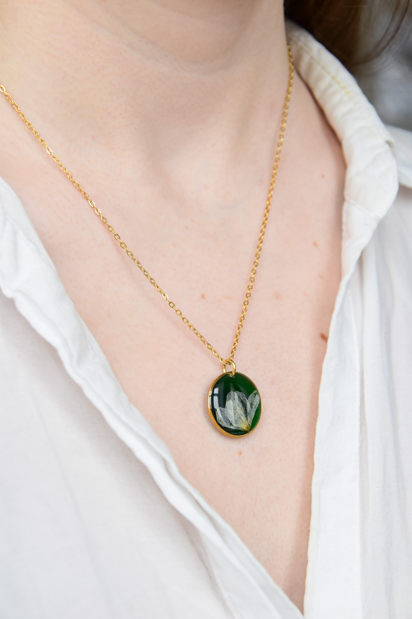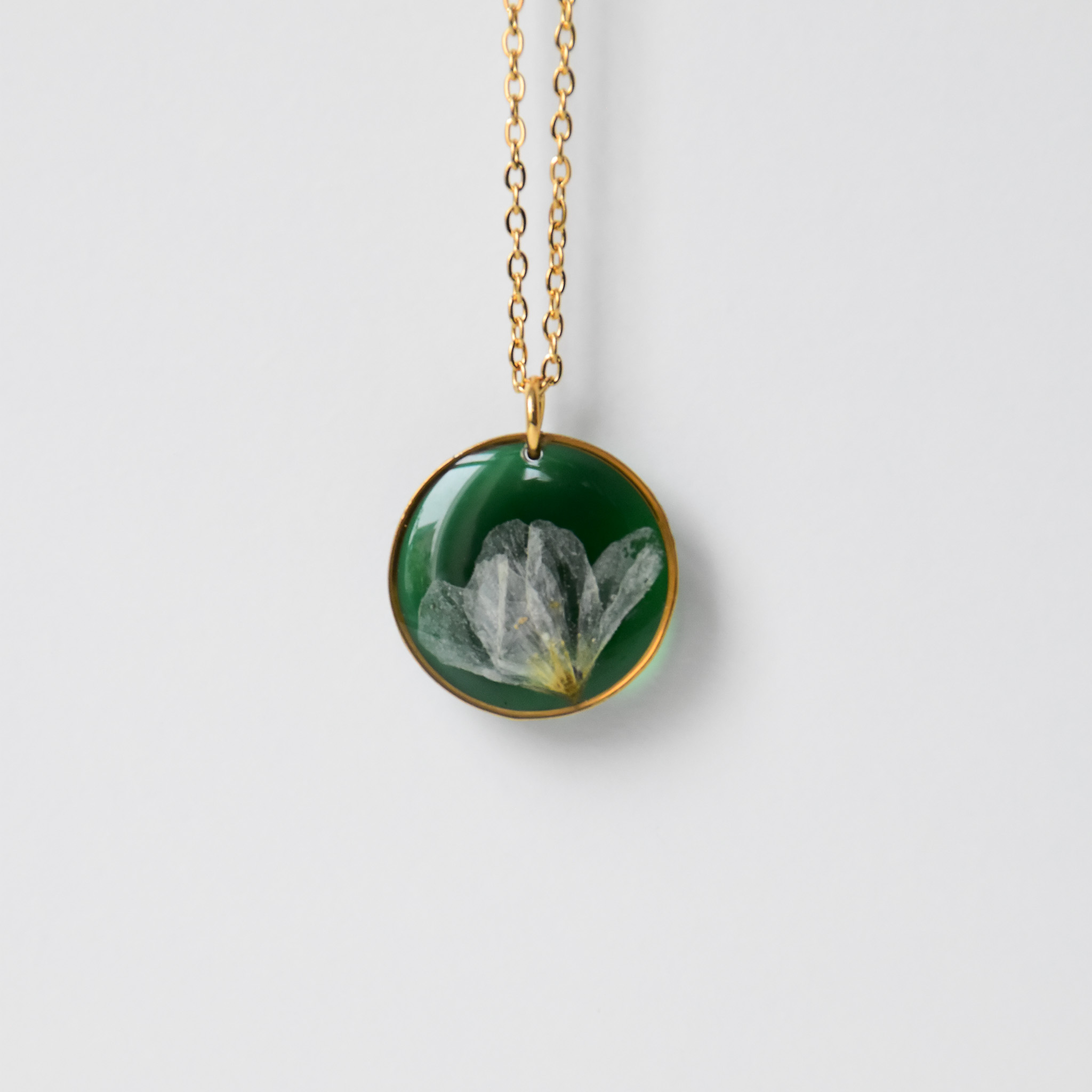 naszyjnik – zielone koło z białym kwiatem