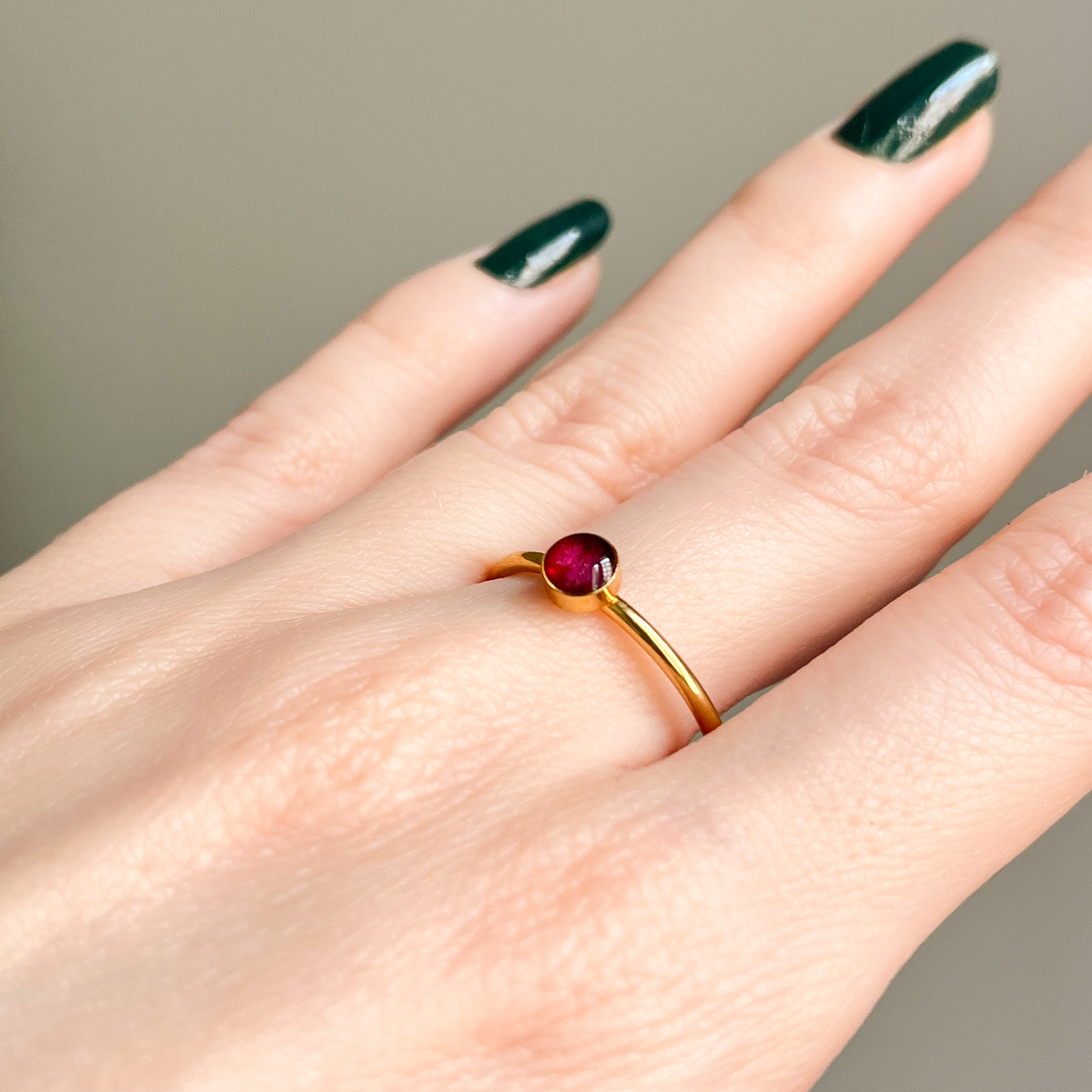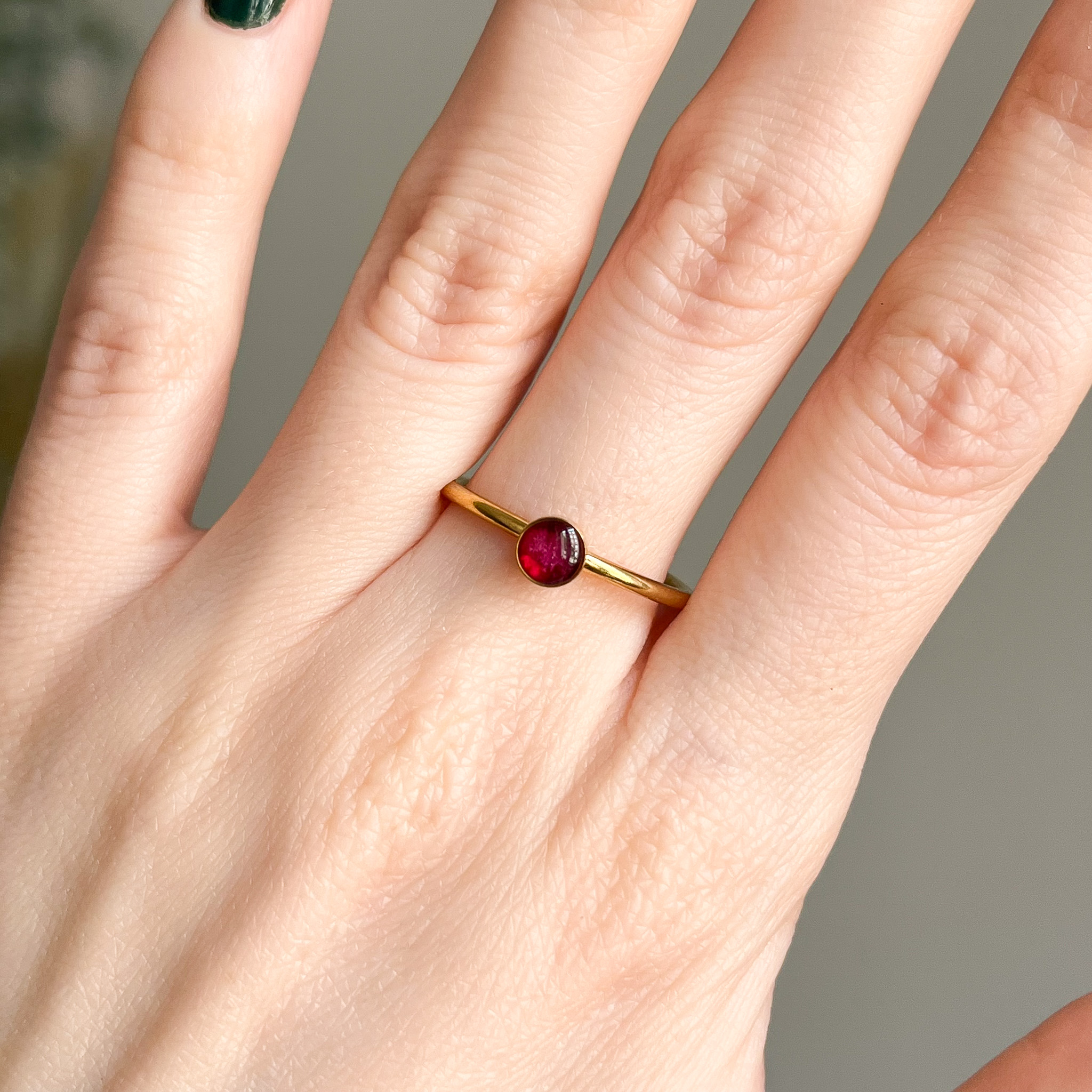 Są w kolorze głębokiej zieleni ze złotym, tłoczonym logo, a w środku znajduje się miękki wkład, dzięki któremu biżuteria się nie porysuje. Zachęcam do tego, żeby to w nim przechowywać biżuterię. Oprócz tego, w środku znajdziesz małą kartkę z podziękowaniem, kontaktem i przede wszystkim - instrukcją pielęgnacji, czyli co zrobić, żeby biżuteria służyła jak najdłużej. O ile w uwagach nie zaznaczysz inaczej - będzie tam również paragon.