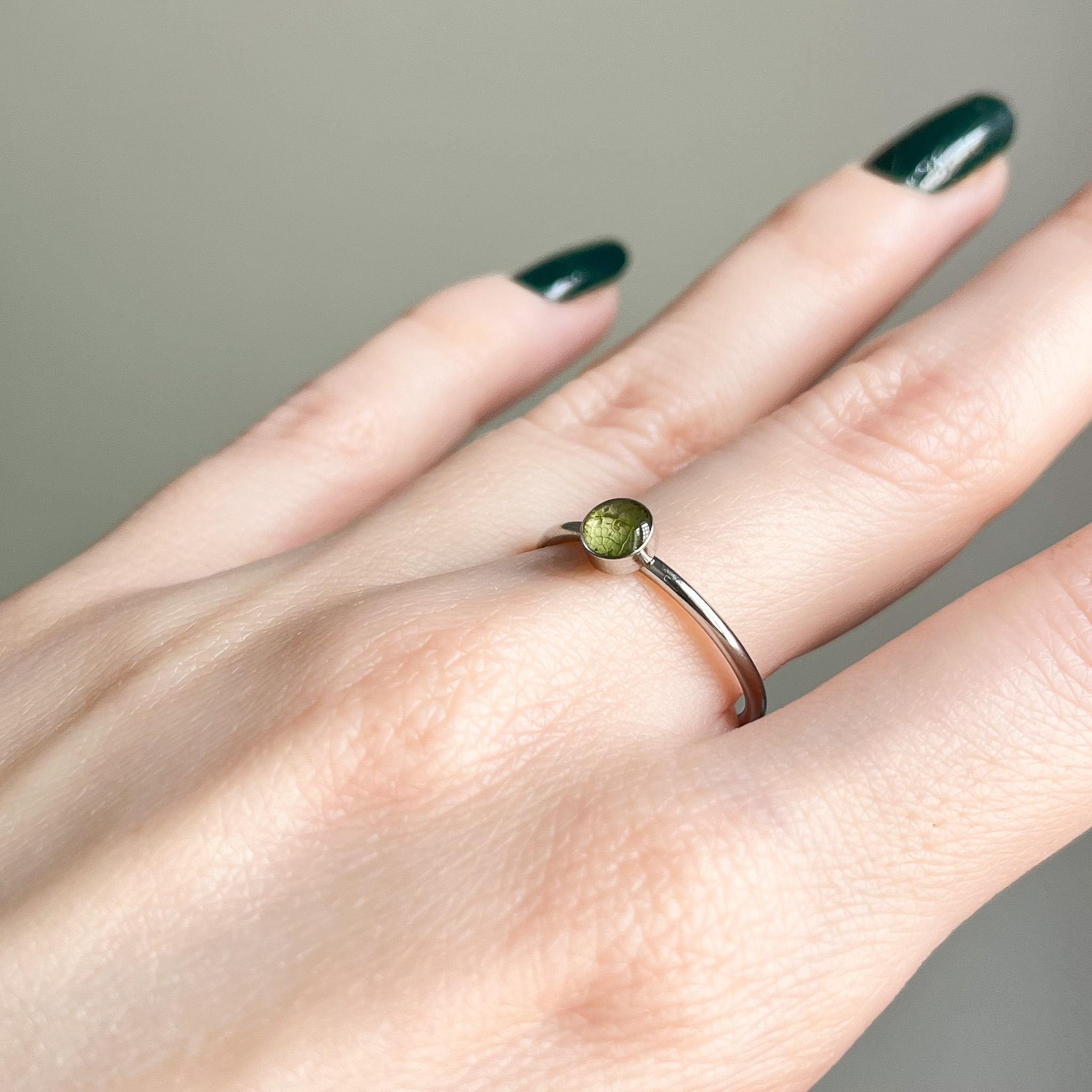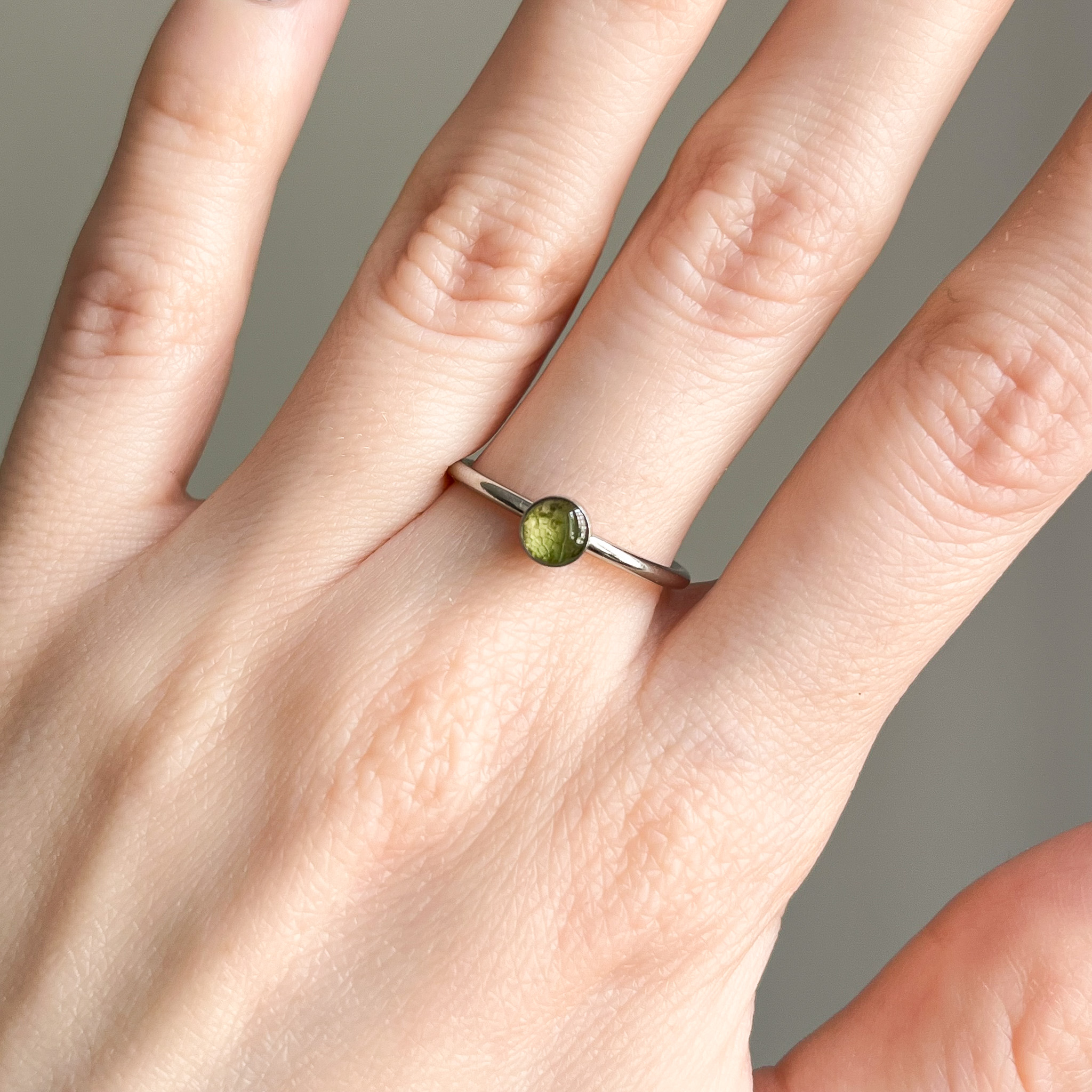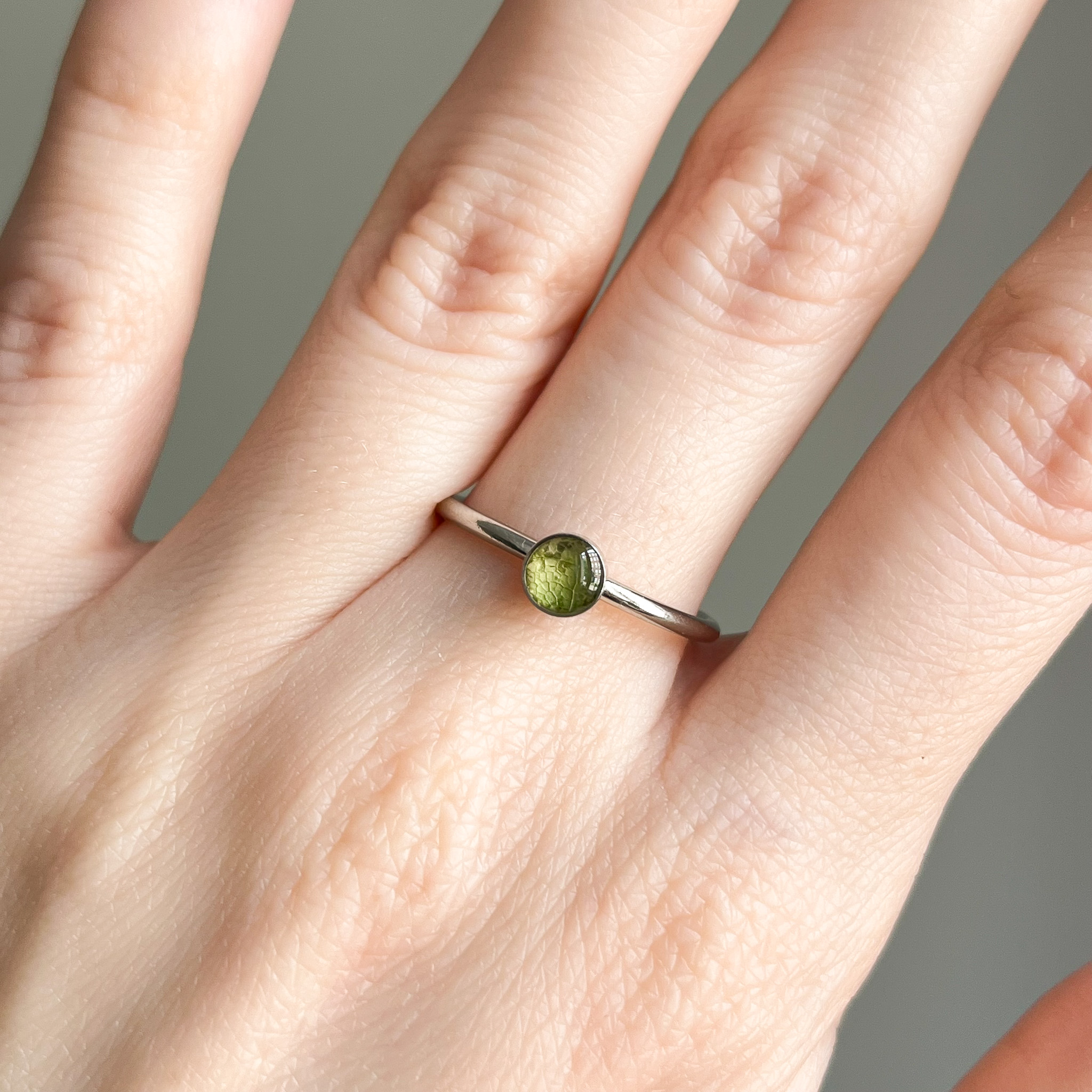 pierścionek – małe oczko z zielonym liściem