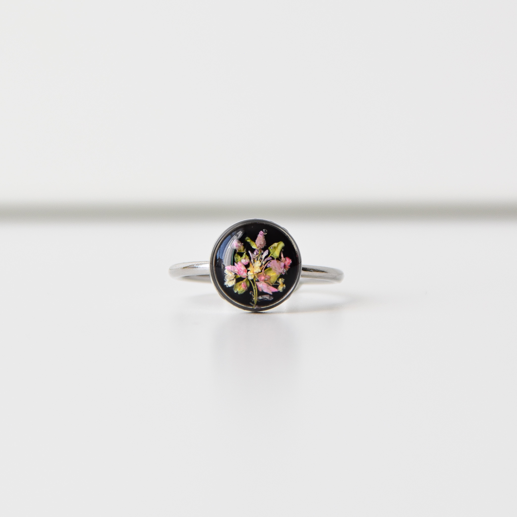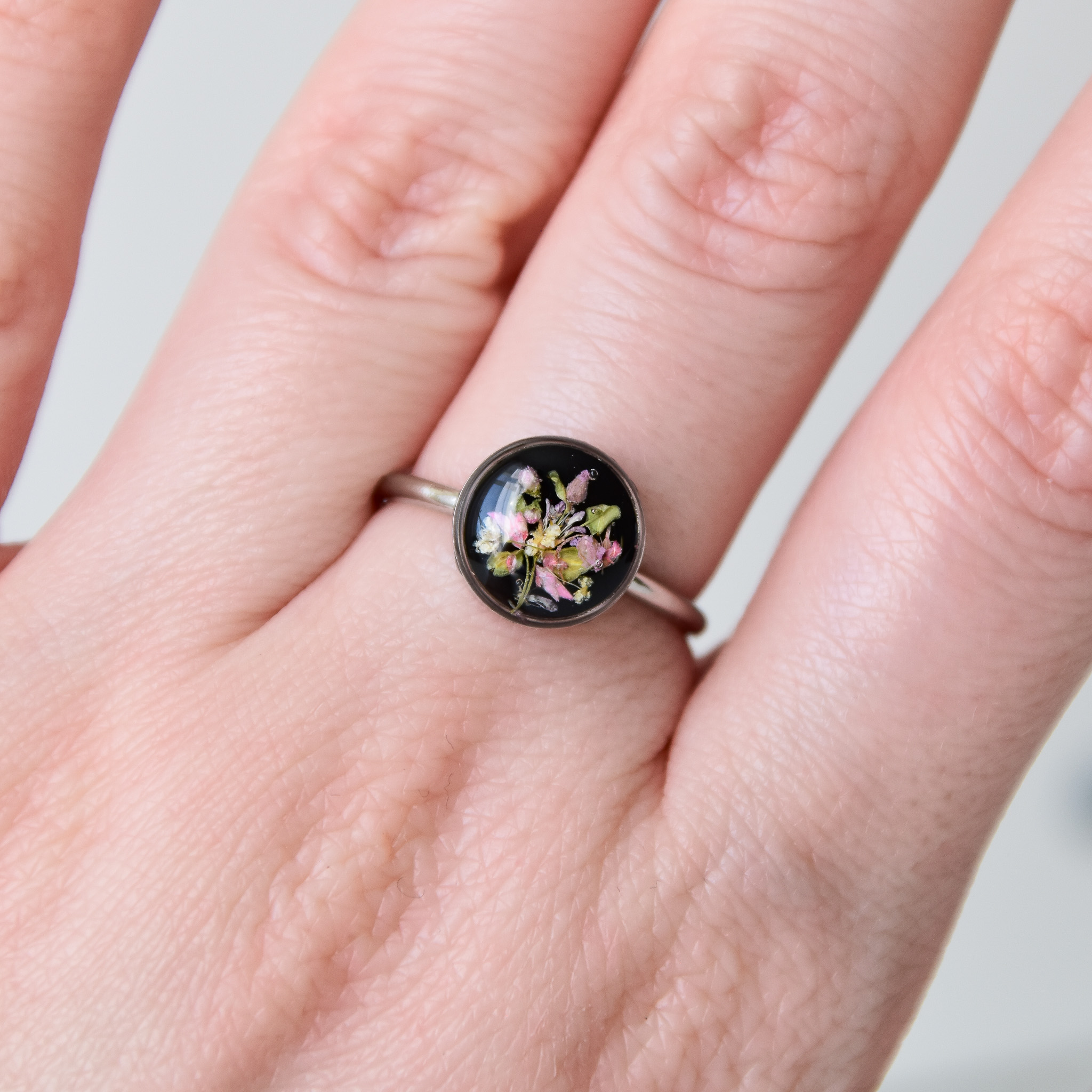 pierścionek z różowo-zieloną kompozycją
