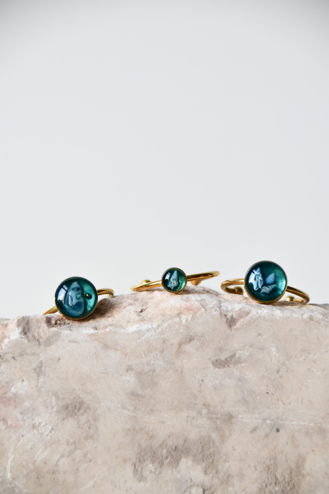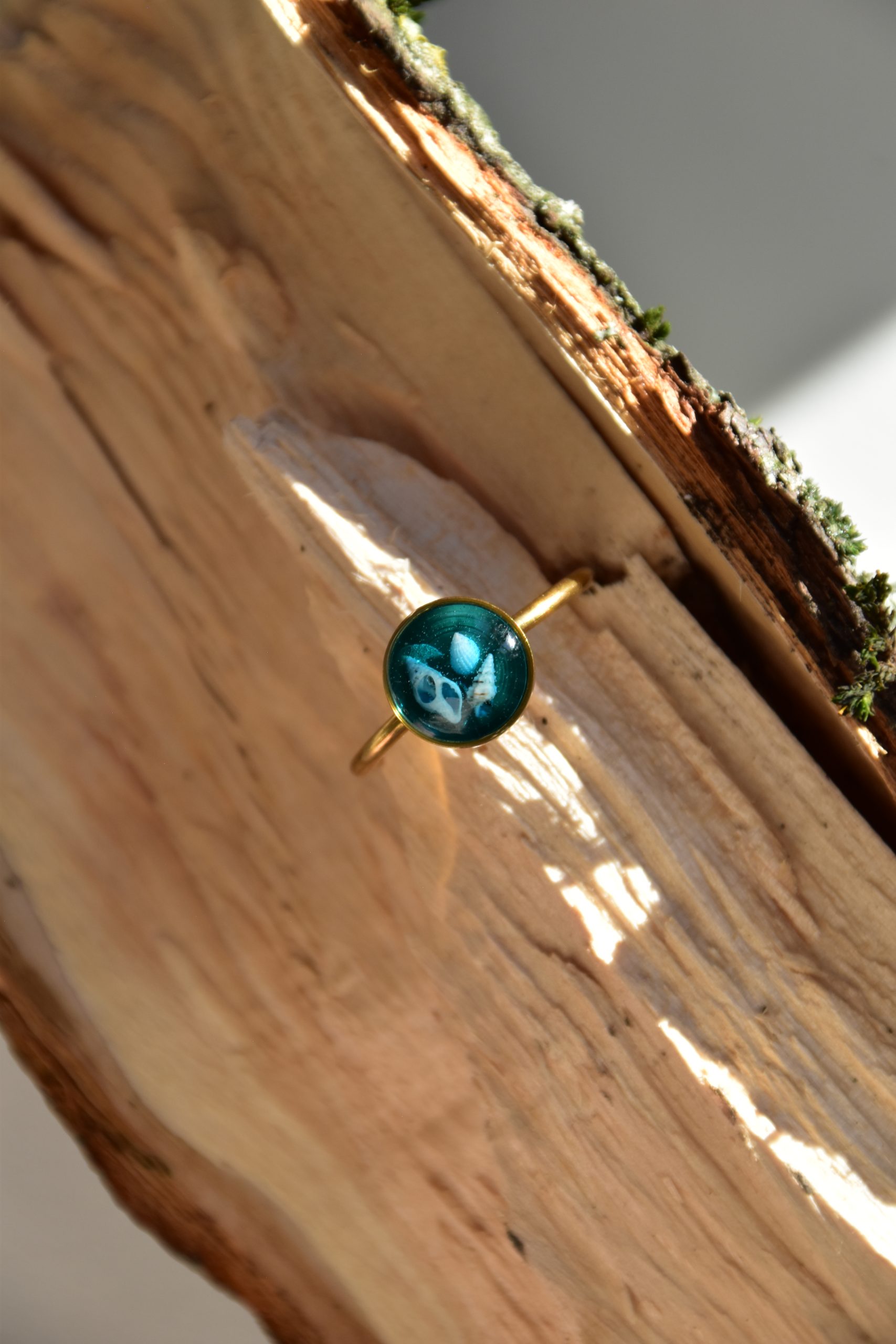 pierścionki turkusowe złote, różne wzory (kolekcja Przepływ z muszelkami)