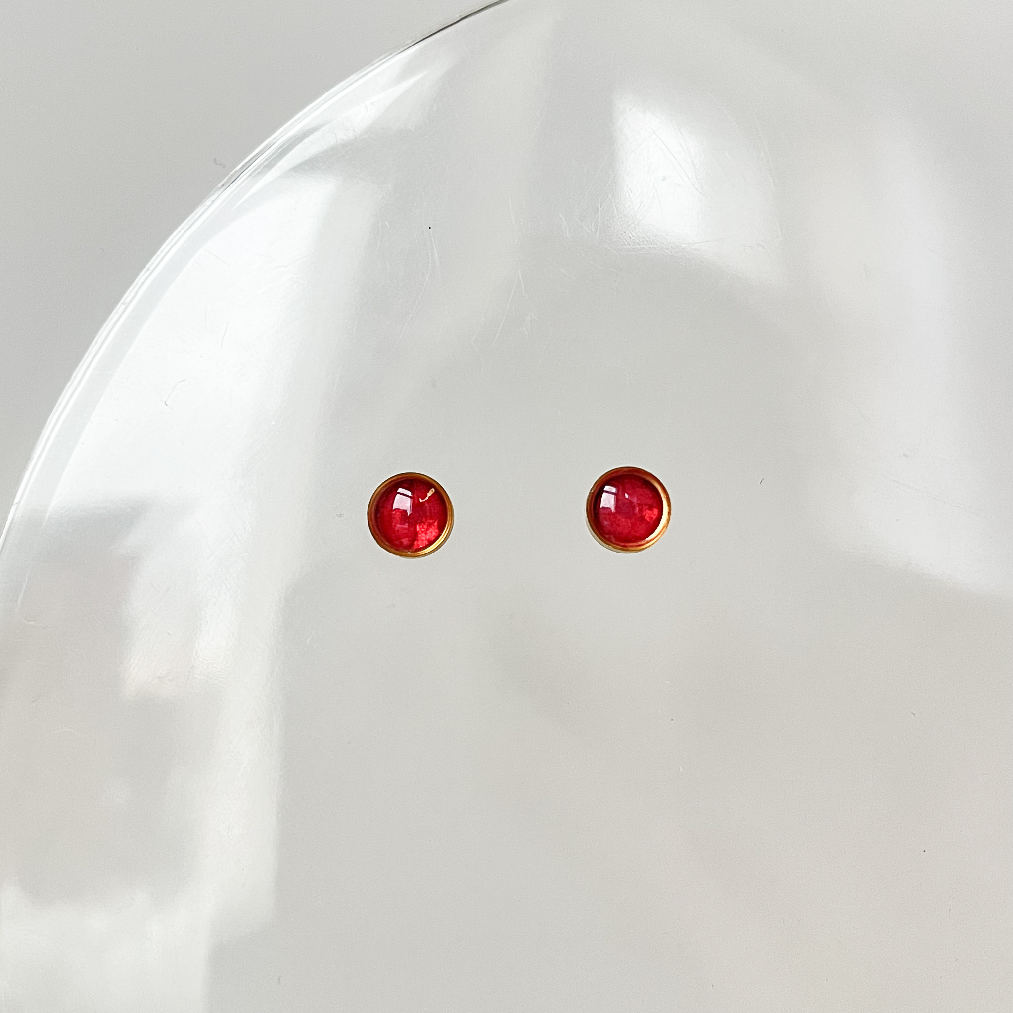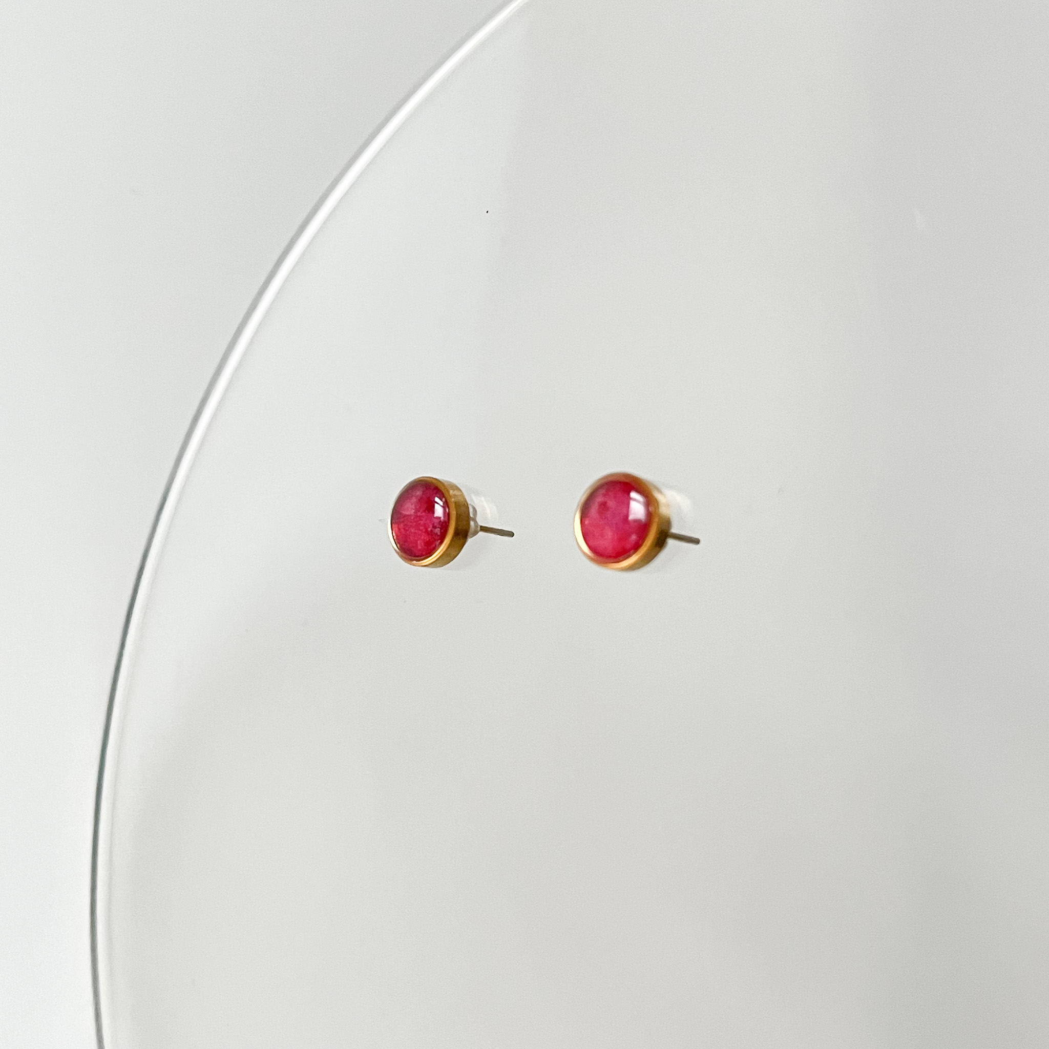 Kolor zmienia się w zależności od światła – kolczyki mogą być bardziej różowe lub czerwone.
